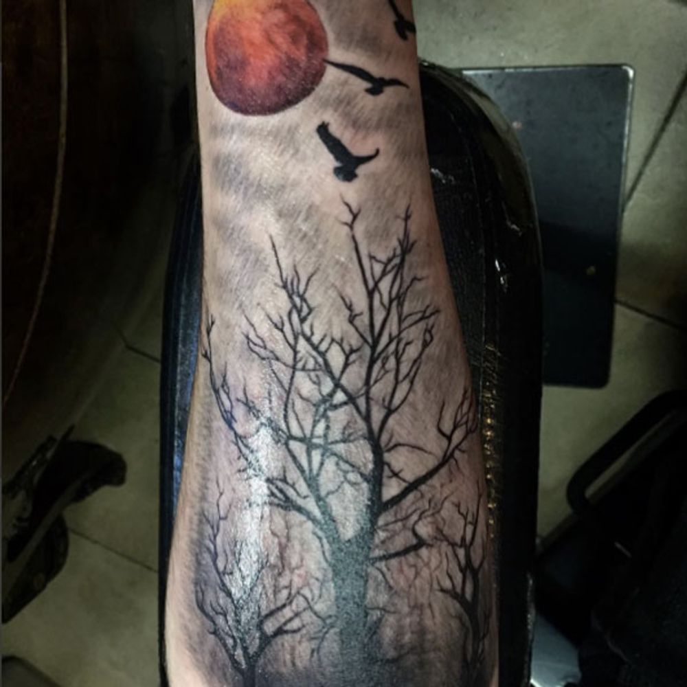 Dark tattoo by Mariano Gonzales #trees #treestattoo #brooklyn #ny #sunsetpark #sketch #draw #paint #art
