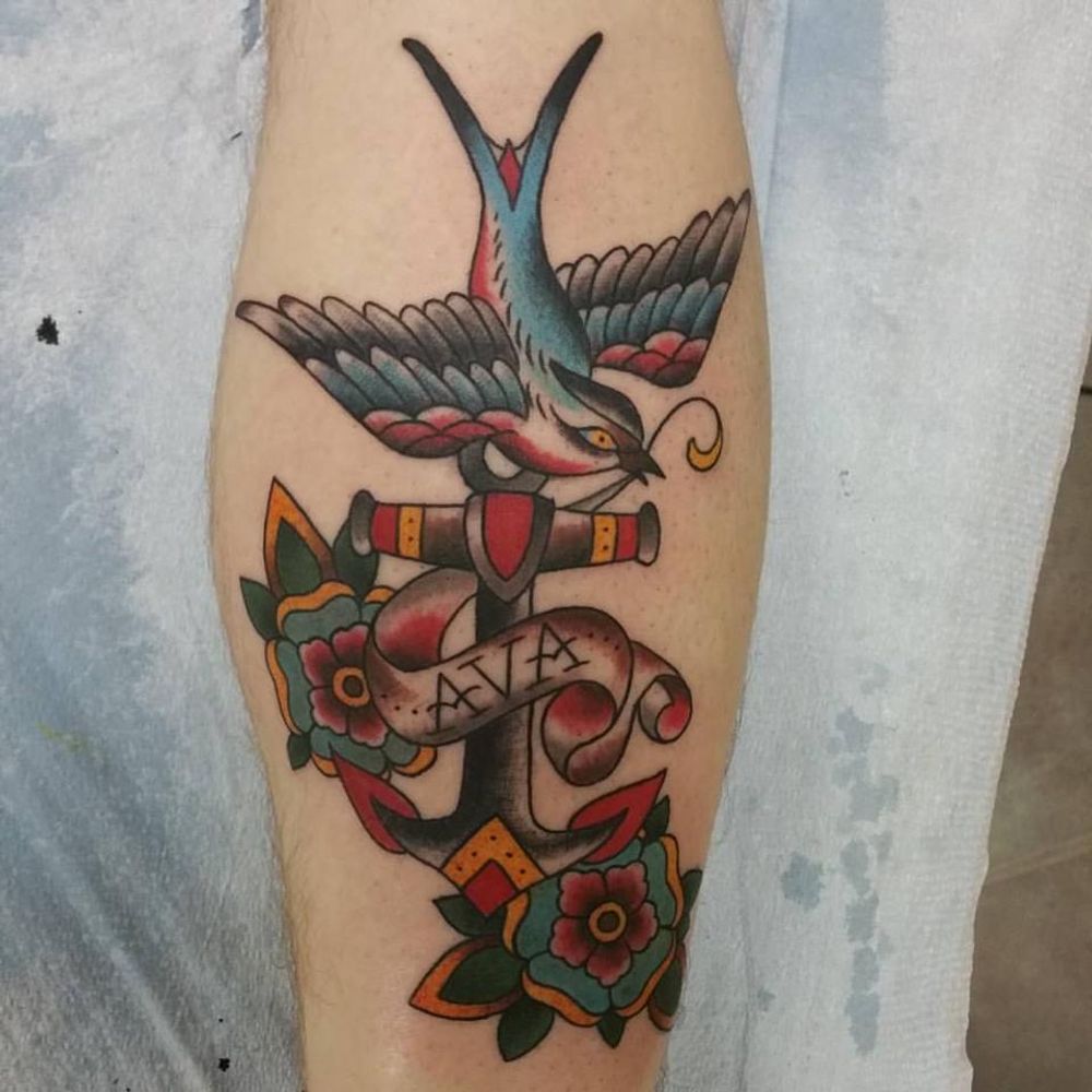 Ian made this yesterday for his boy Derek and his daughter Ava 🙌 #swallow #anchor #tattoo #traditionaltattoo #americantraditional #brightandbold #longislandtattoo #longislandtattoos #visionarytattoostudio #ronkonkoma