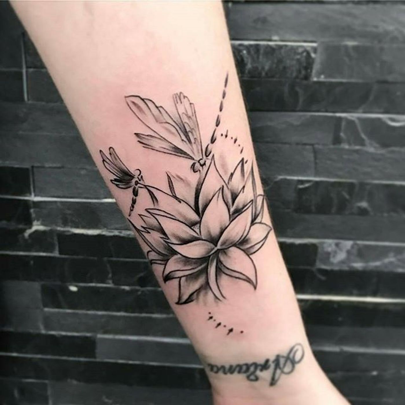 Simple lotus and dragonfly. GET TATTED UP! #inkaholik #inkaholiktattoos #miami #kendall #lotus #dragonfly