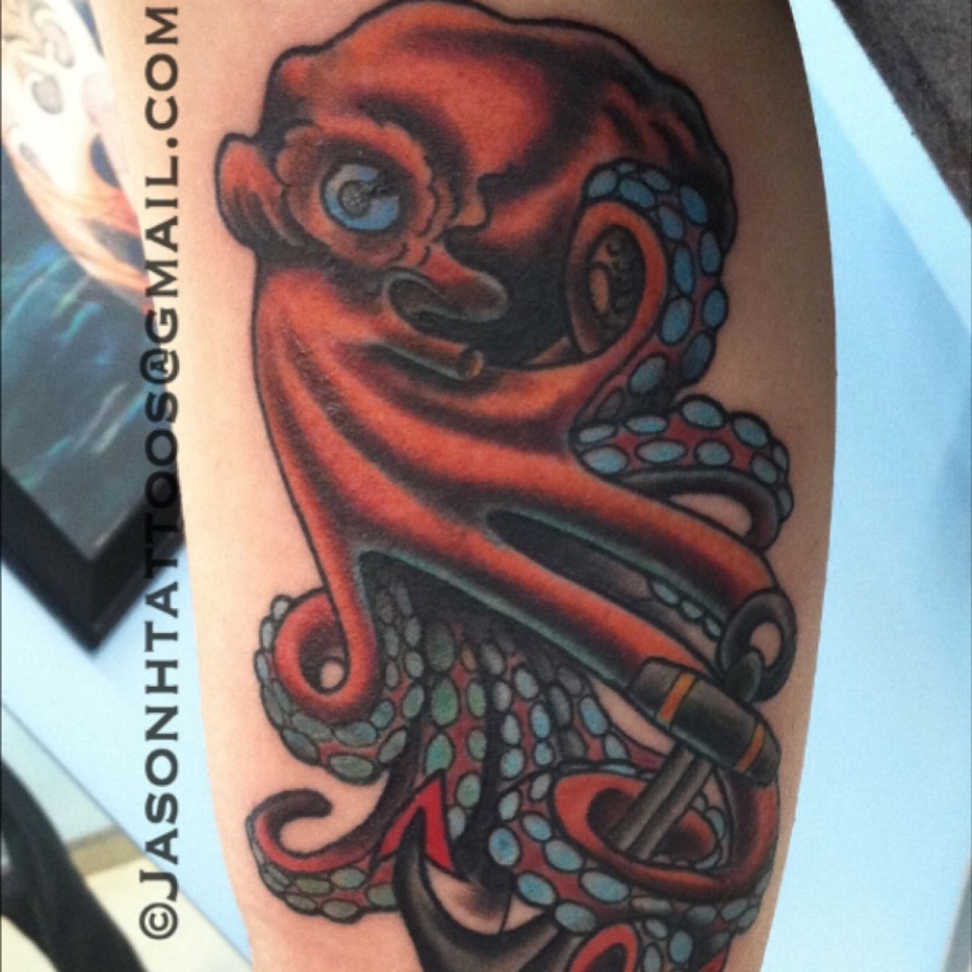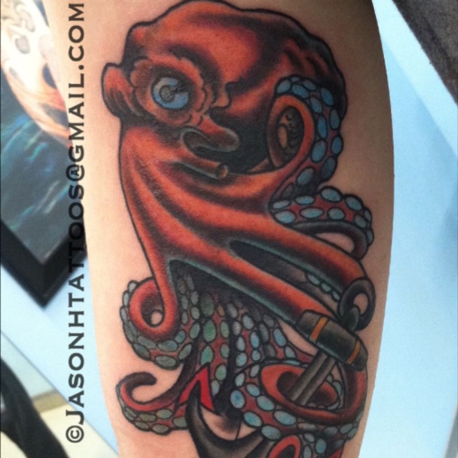 Octopus done on a navy dude a couple years ago #octopustattoo #neotraditional #neotrad #neotradsub #anchor #realtattoos #chicagotattooers #insightstudios #wickerpark #chicago #illinois