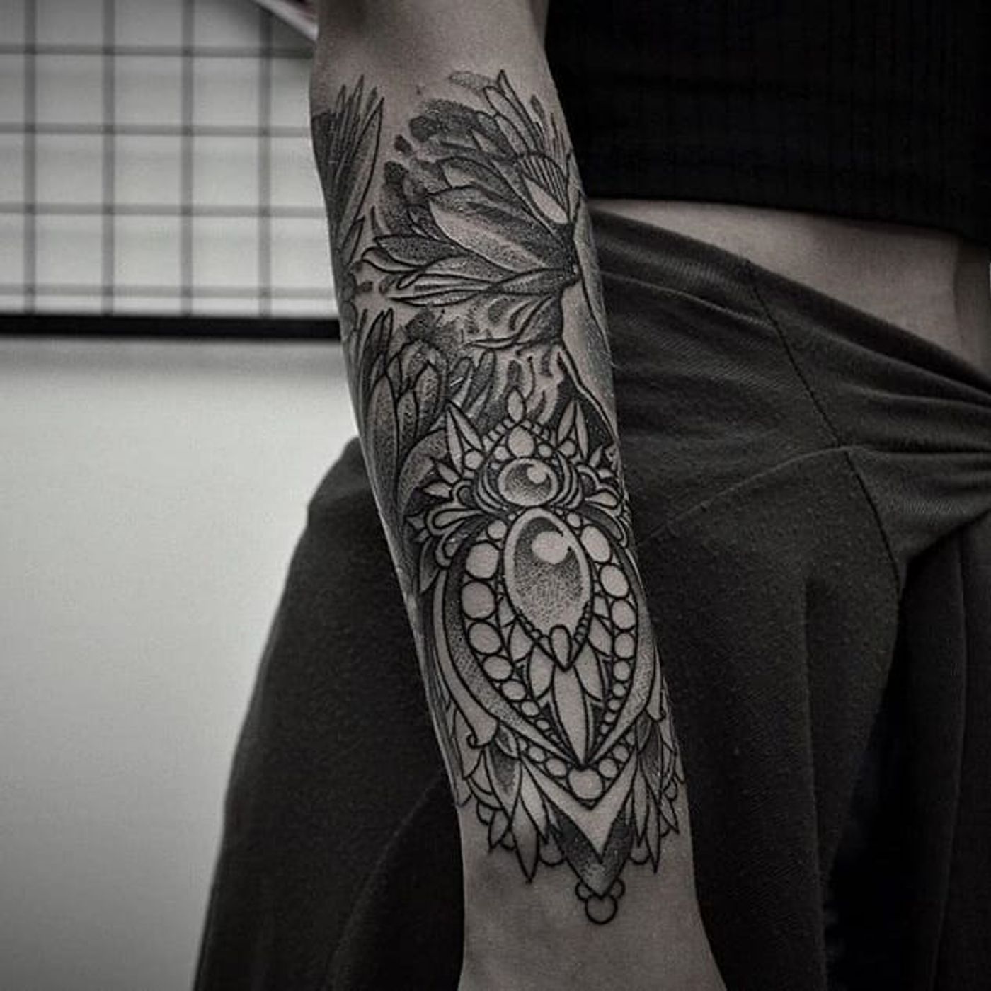 Dotwork forearm tattoo. (via IG - taras_shtanko) #geometric #decorative #dotwork #TarasShtanko