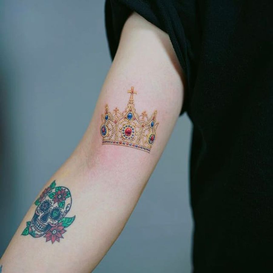 Crown by Nando Tattoo (via IG-nandotattooer) #tinytattoo #microtattoo #flora #fauna #NandoTattoo