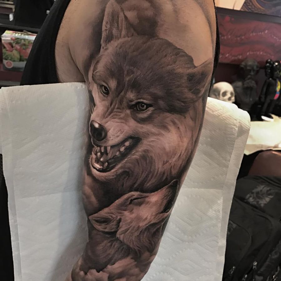 A pack of wolves by Ryan Mullins (IG—ryanmullinsart). #blackandgrey #portraiture #realism #RyanMullins #wolves