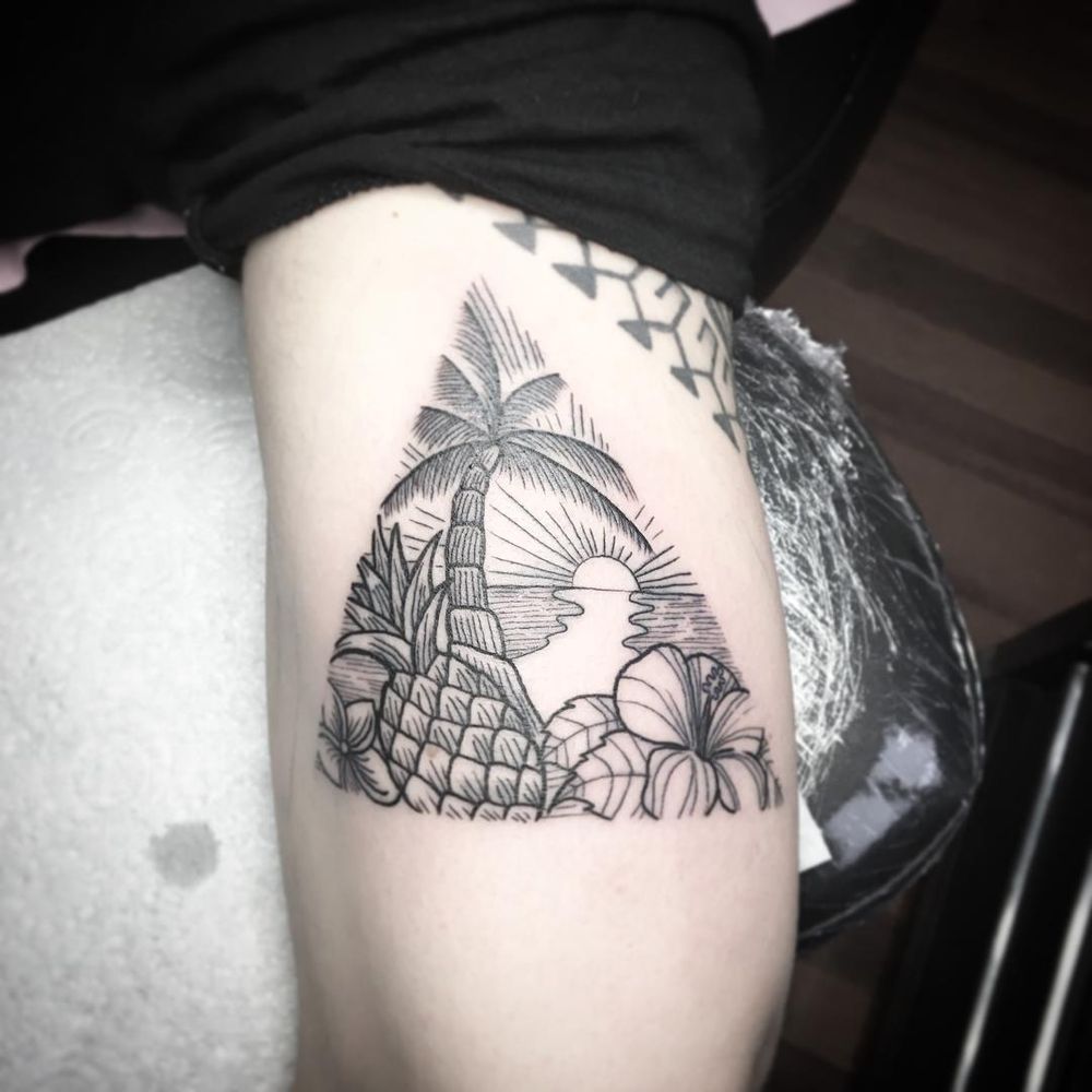 Done by elpincheloco #blackwork #blackworkers #tattooartist #tattoo #pricktattoo #shoreditch #lineworktattoo #tiki #duckandwaffle #traingle #blackworktattoo