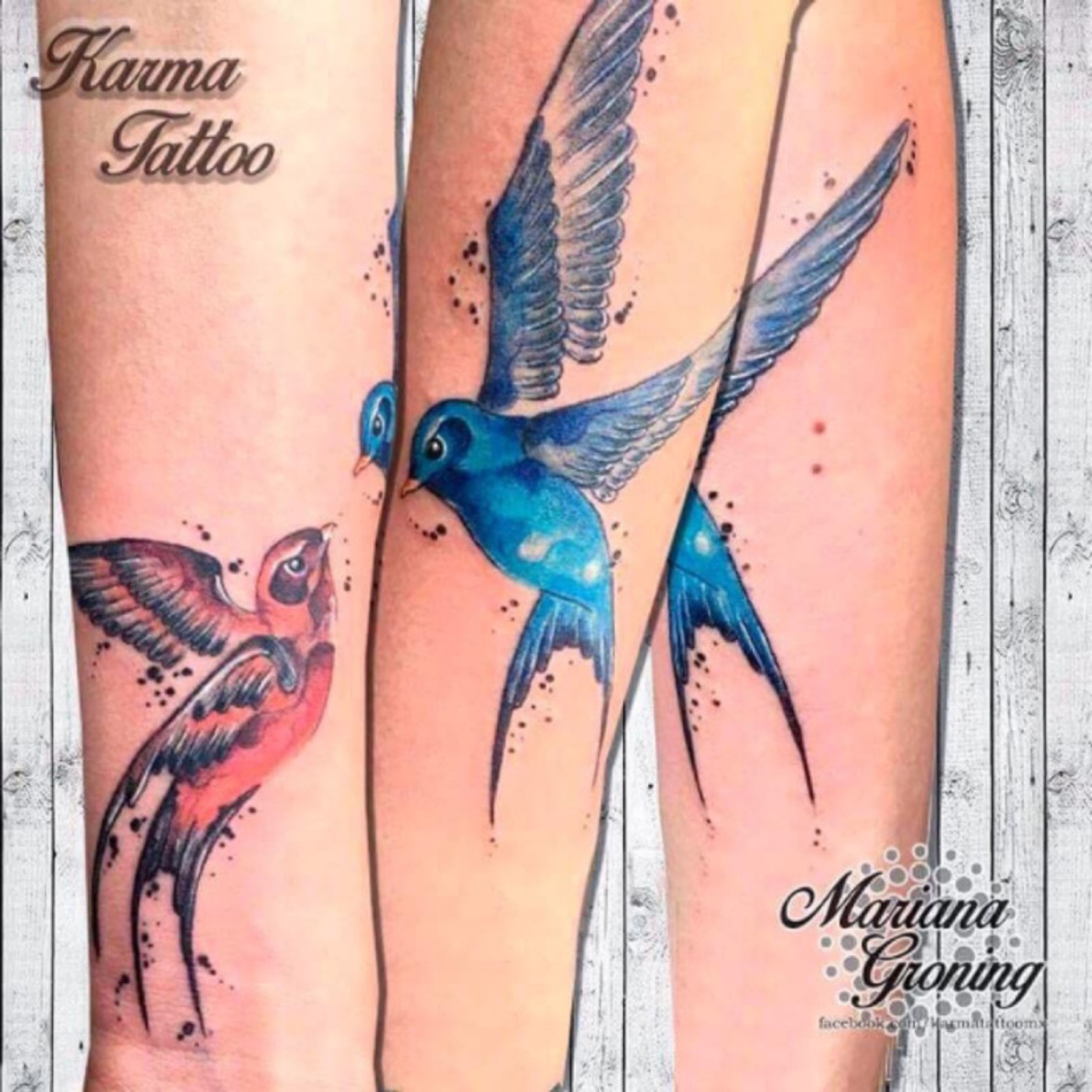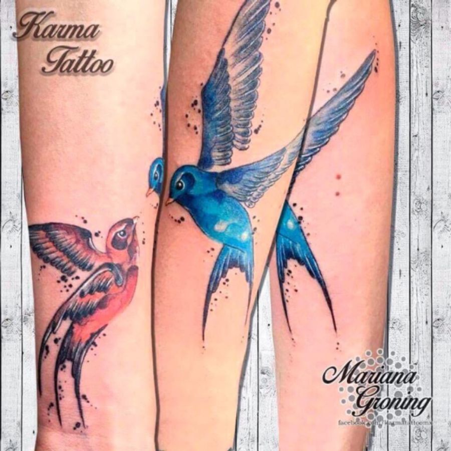 Watercolor swallow tattoo, tatuaje de golondrinas en acuarela #tattoo #tatuaje #tattooed #tatuadora #marianagroning #cdmx #mexico #mexicocity #karmatattoomx #madeinmexico #tatuagem #acuarela #watercolor #watercolortattoo #swallow #golondrina