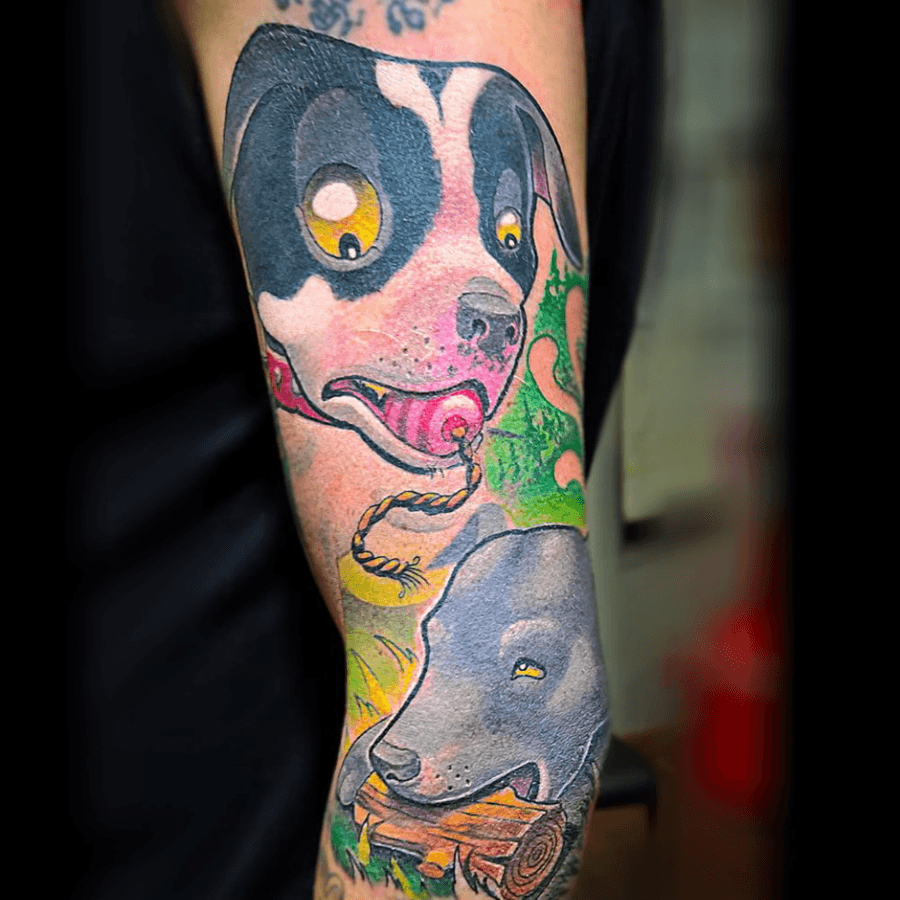 Cartoon dog tattoo #tatuaje #newschool_nation #barcelonatattoo #newschooltattooartist #spaintattoo #punkotattooartist #color #style #worldofnewschool #colortattoo #cartoontattoo #comictattoo #barcelona