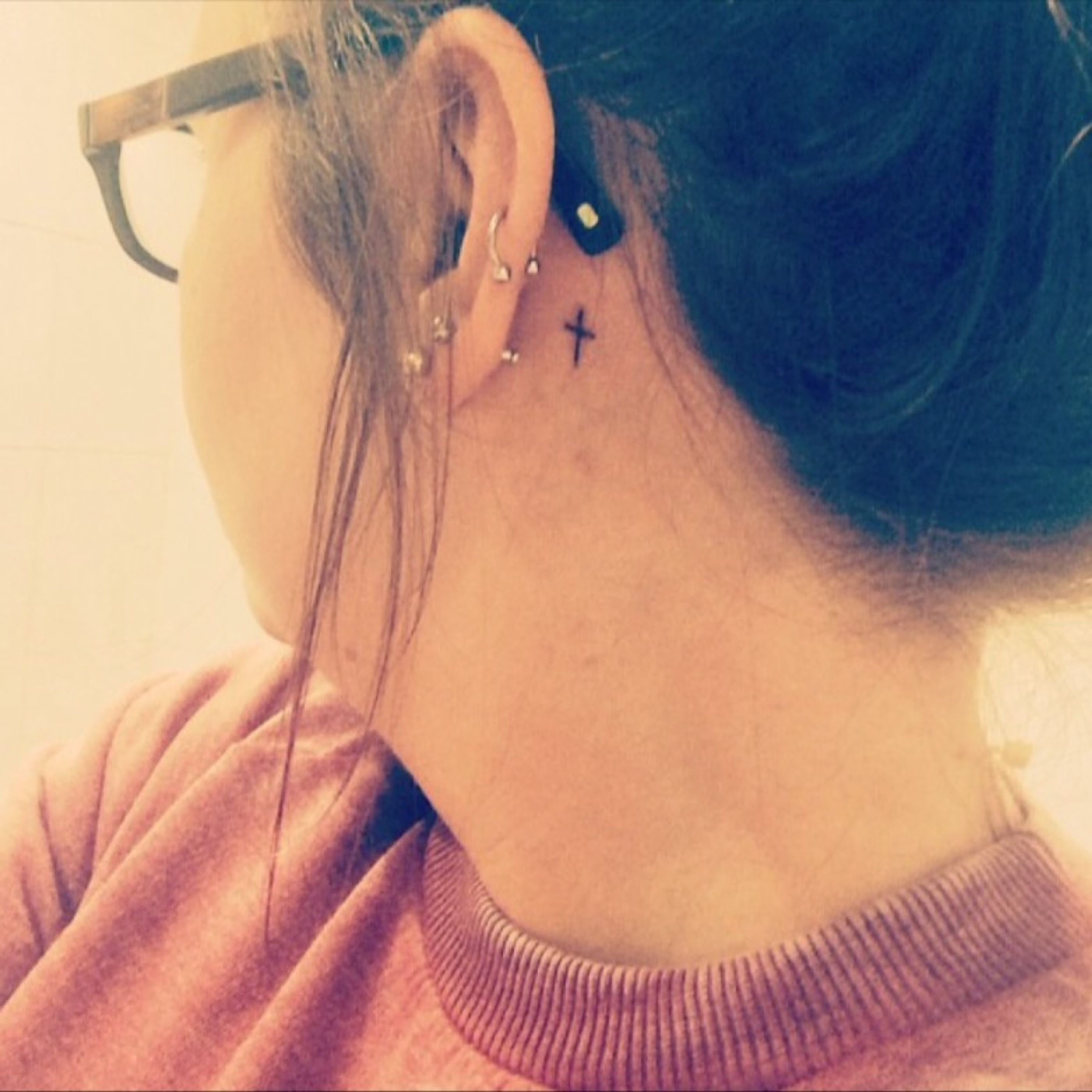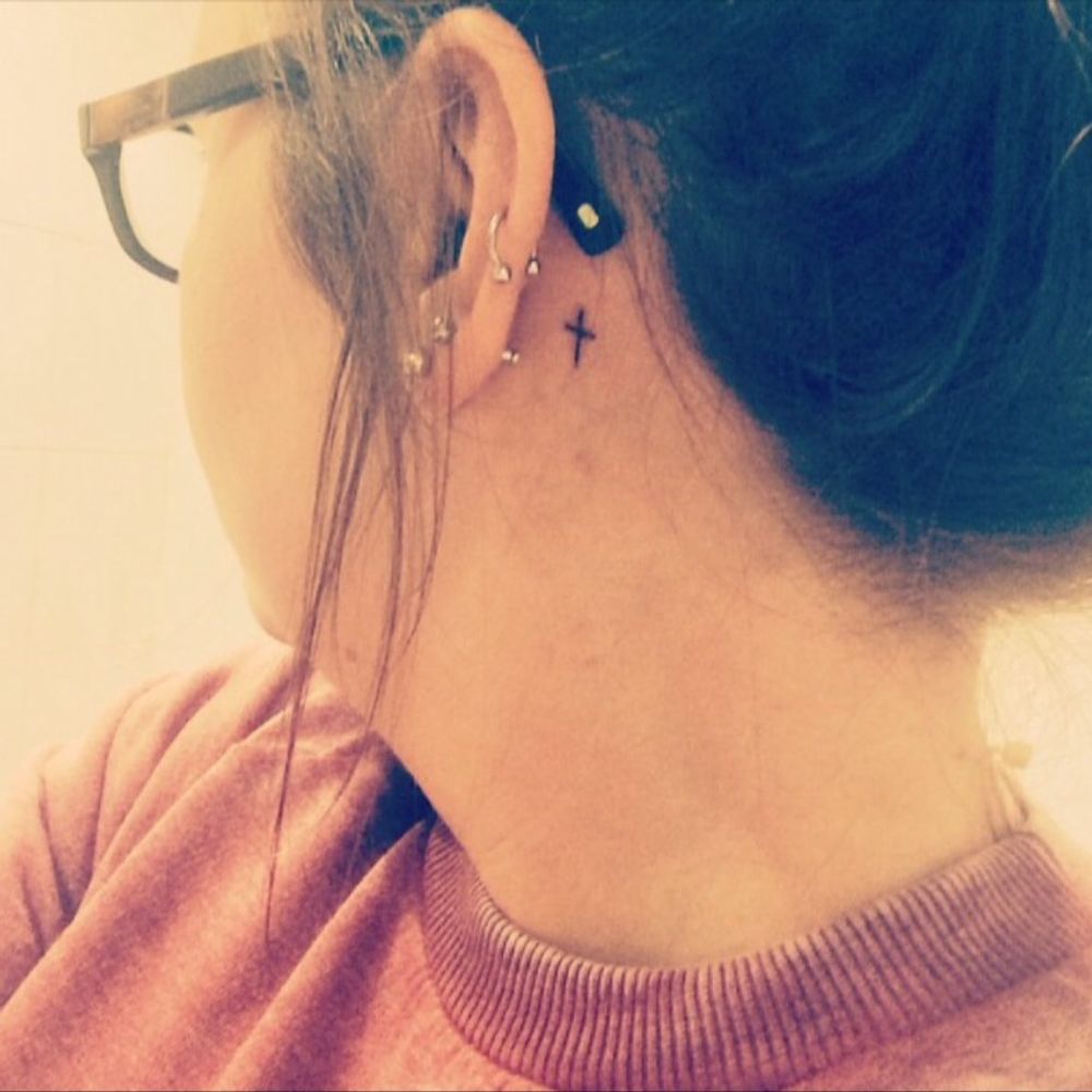 When your friend sees your #cross #tattoo and says "favvers youre off #thisisengland" ha! #behind #ear #small #simple