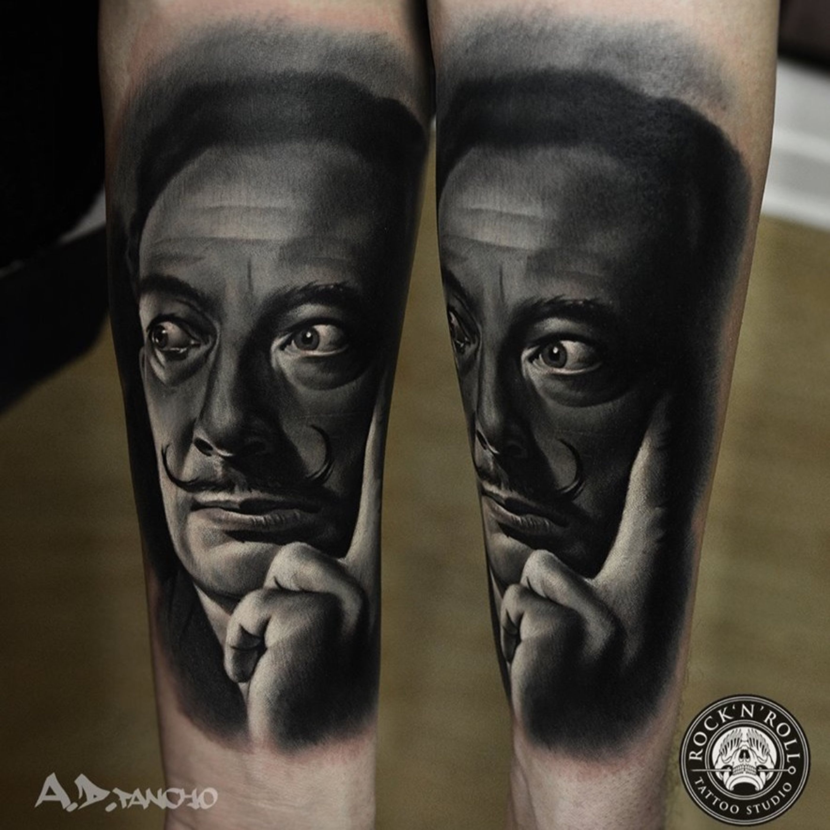 #blackandgrey #blackwork #portrait #realistic #Dali #ADPancho