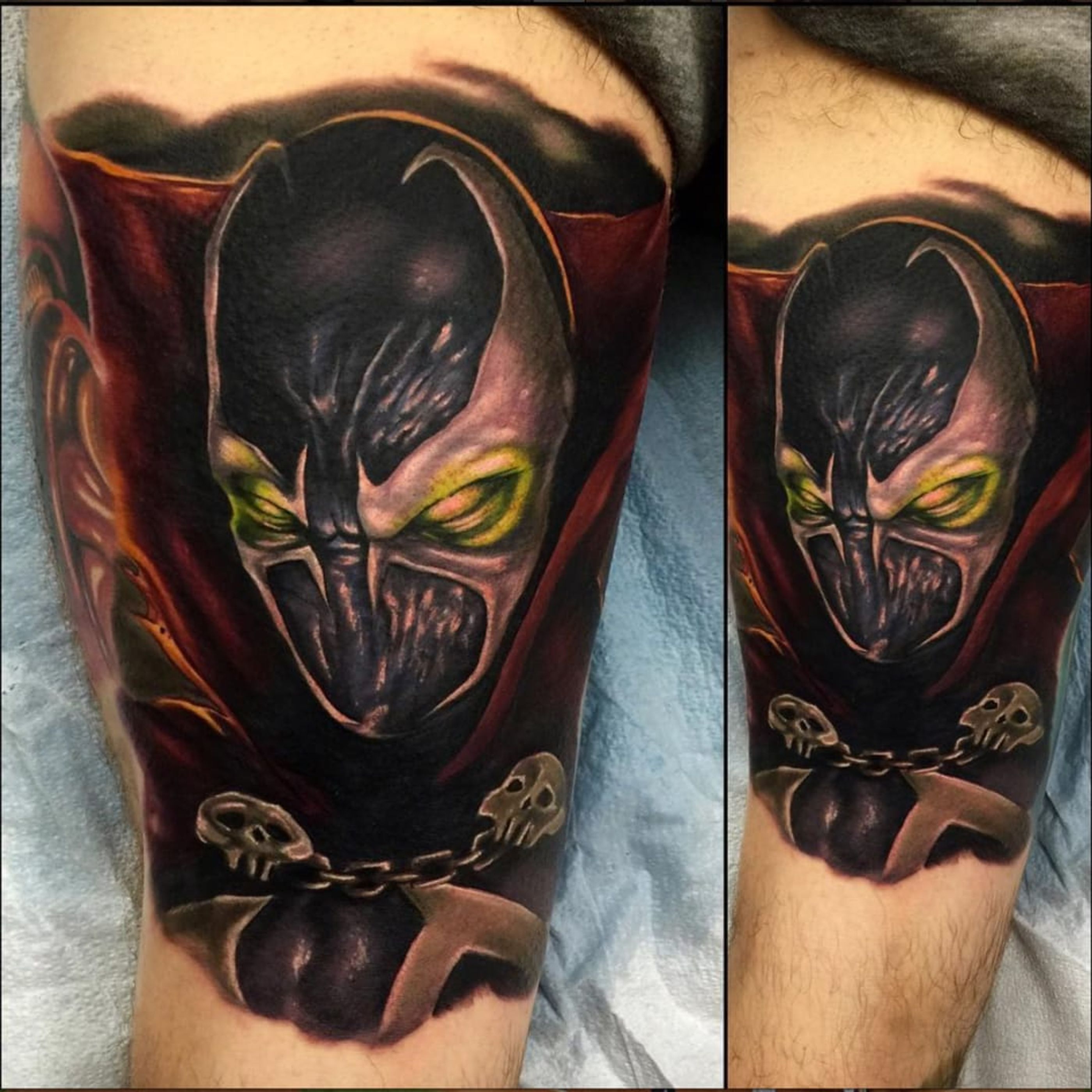 Spawn by Audie Fulfer Jr. (Via IG - audie_tattoos) #AudieFulfer #realism #spawn #comics