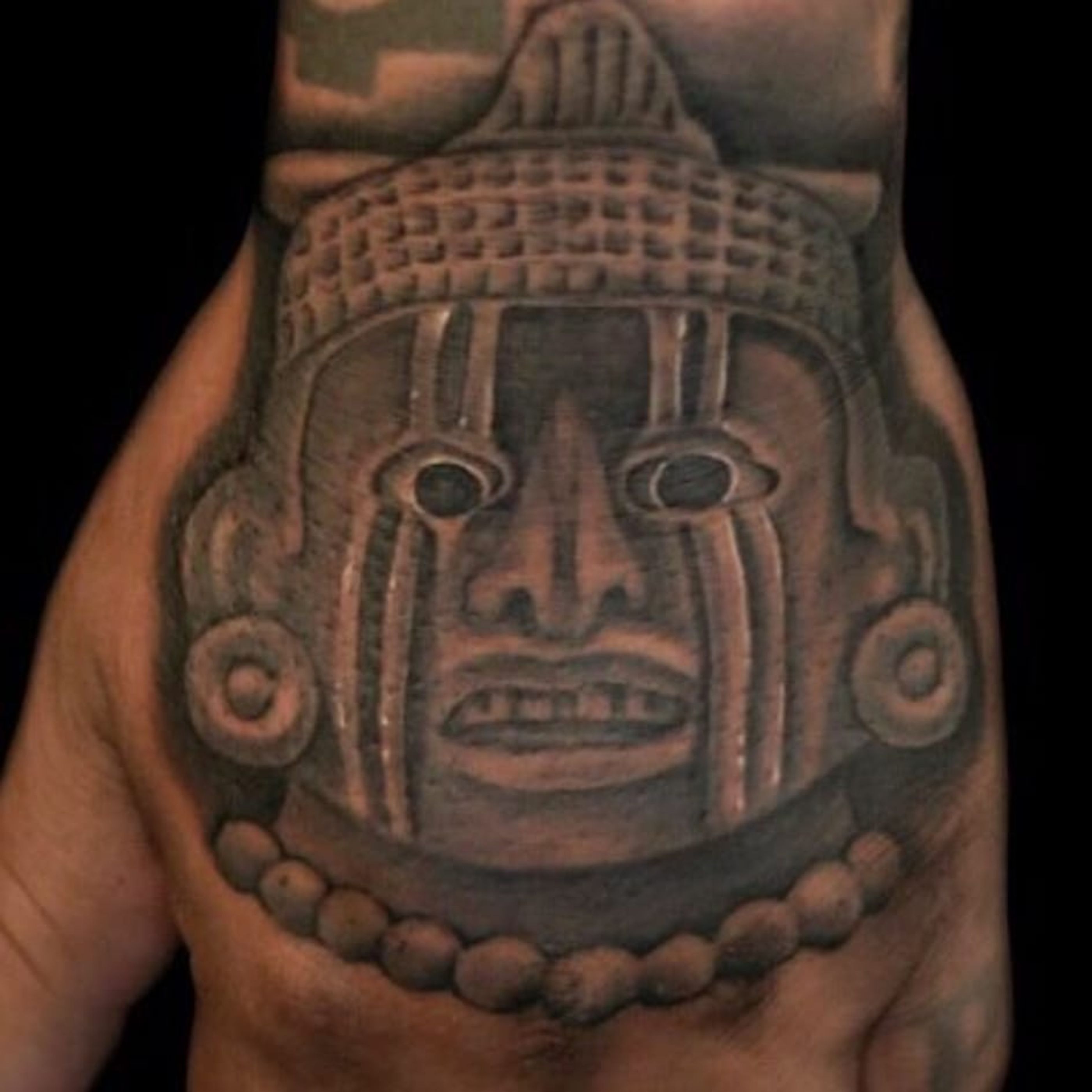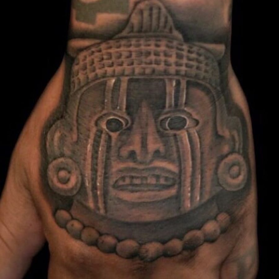 Xipe Totec, the Aztec god to whom prisoners were sacrificed, by Goethe (IG—tattoosbygoethe). #blackandgrey #Goethe #Mesoamerican #neoAzteca #preHispanic #realism #statuesque #XipeTotec