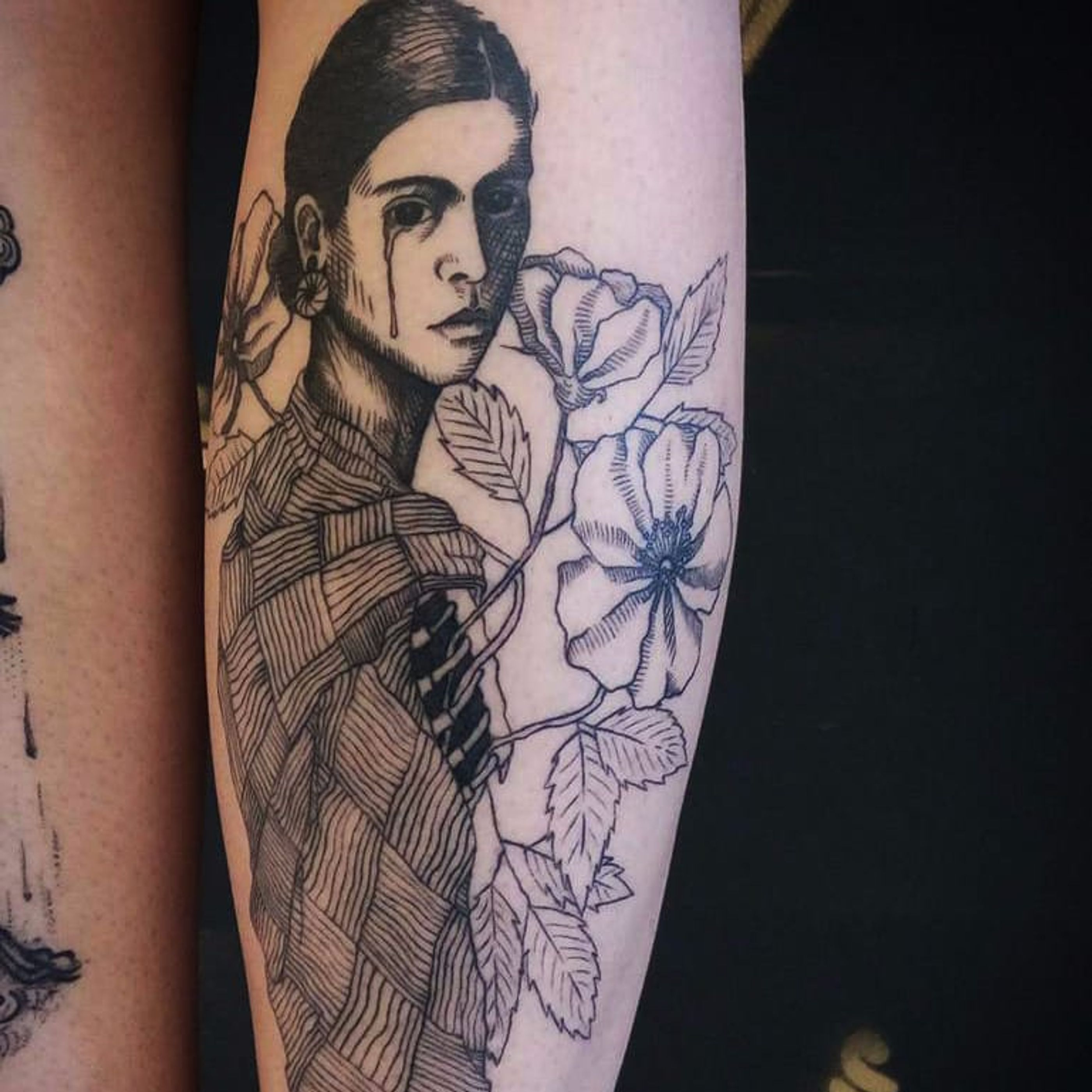 Frida nos traços de Luna Lu :) #TatuadorasDoBrasil #tatuadorasbrasileiras #LunaLu #frida #fridakahlo
