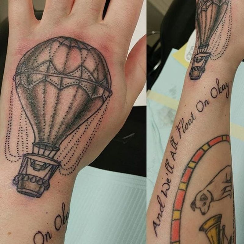 Float On lyrics and a riff on the Modest Mouse logo (via IG—butterbrickcosplay) #PlayItAgain #FloatOn #ModestMouse #MusicTattoo #LyricsTattoo