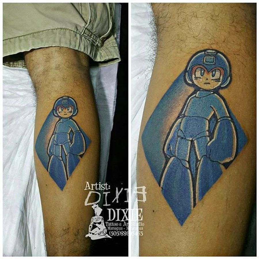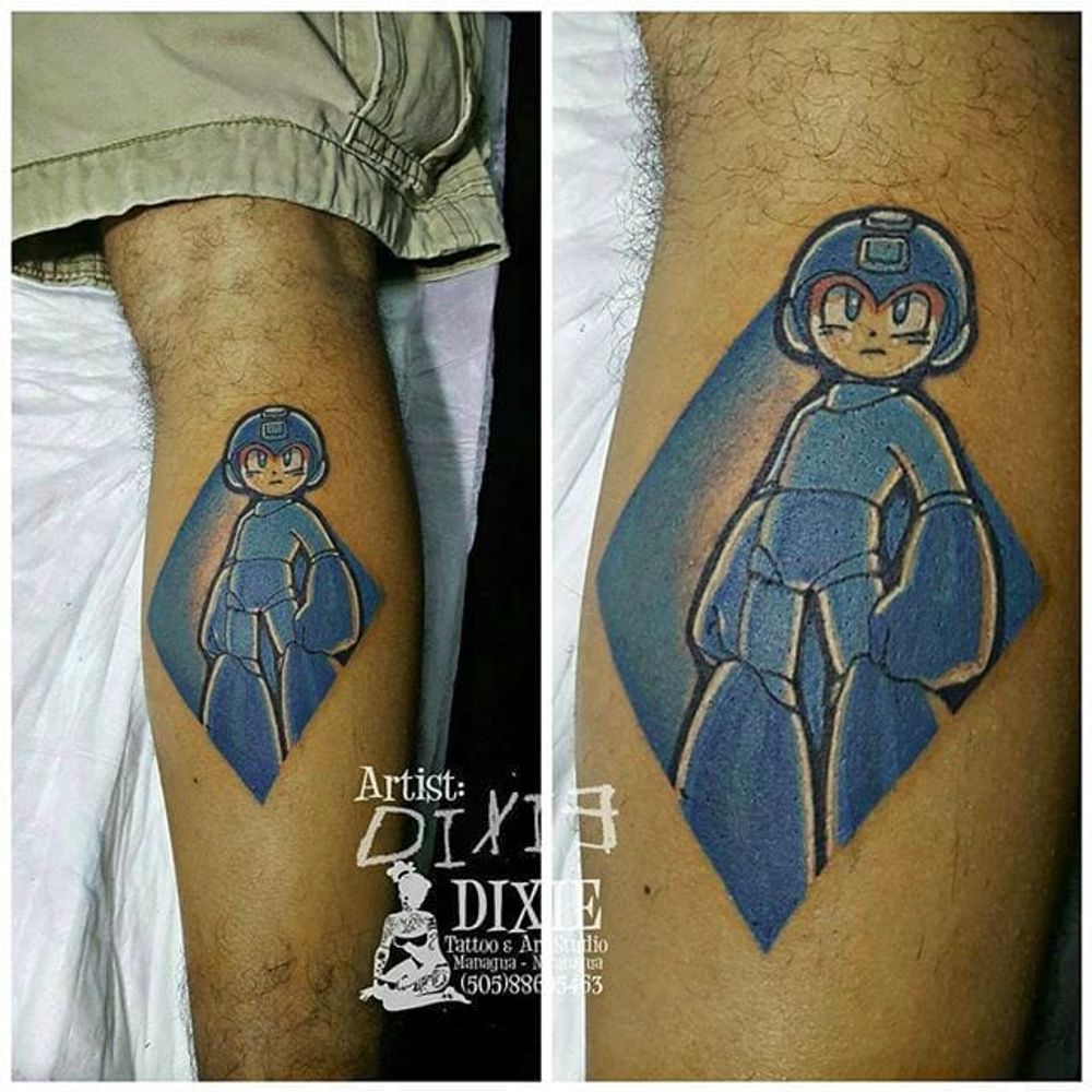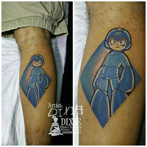 The Blue Bomber by Dixie Tattoo (via IG -- dixietattoo) #dixietattoo #legtattoo #megaman