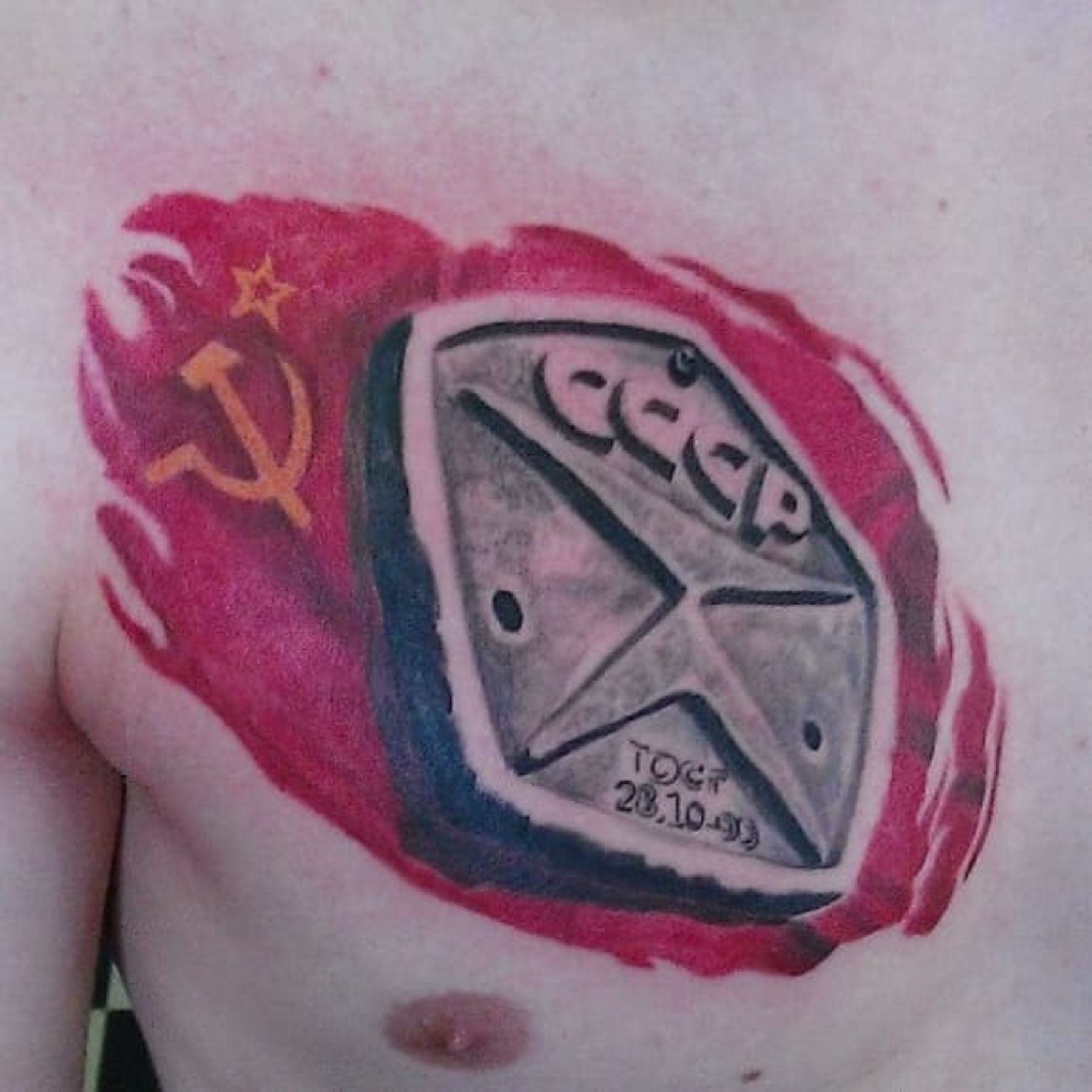 Soviet Russia chest piece by Evgeniy Babin (via IG -- babintattooart) #EvgeniyBabin #ussr #cccp #communism
