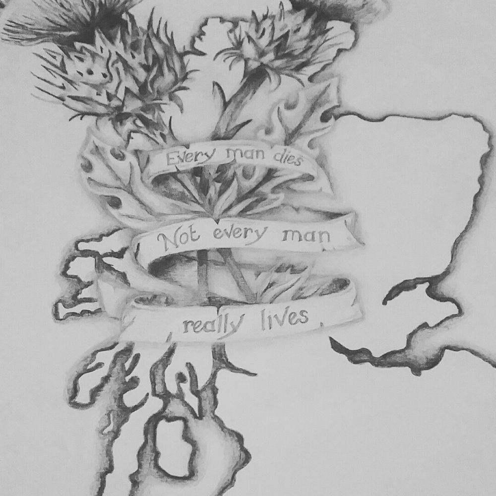 I'm also working on a Scottish themed sleeve for a client. Did you know a Unicorn...yes, a Unicorn...is the national animal of Scotland??! I love Scotland even more now I know that (seriously thought he was taking the piss!) Lots more to add to this, very exciting to be designing a sleeve for someone but hard work too...I love it! #scotland #scottishthemedsleeve #thistles #halfsleeve #sleeve #tattoodesign #chockiwockidesigns #blackandgrey