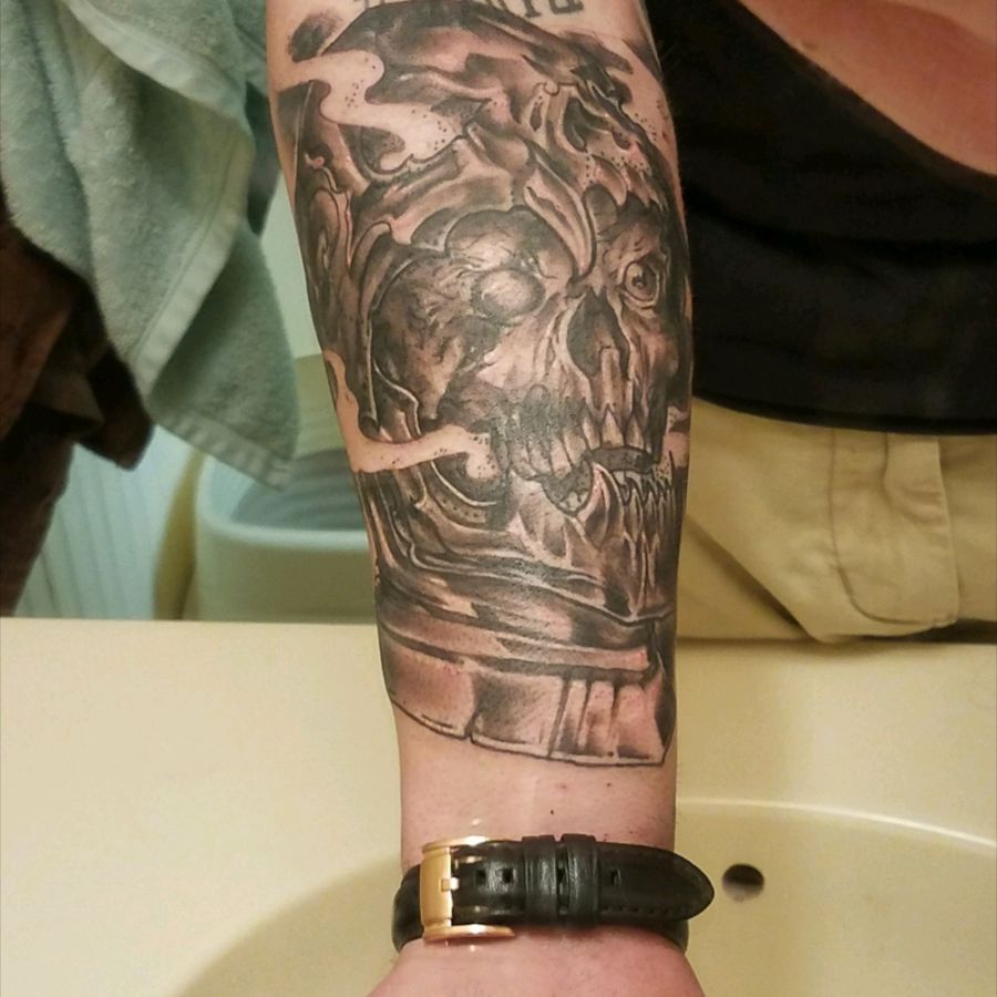Undead knight w/ skull helmet by Shaun Whitehead of Golden Hammer tattoo