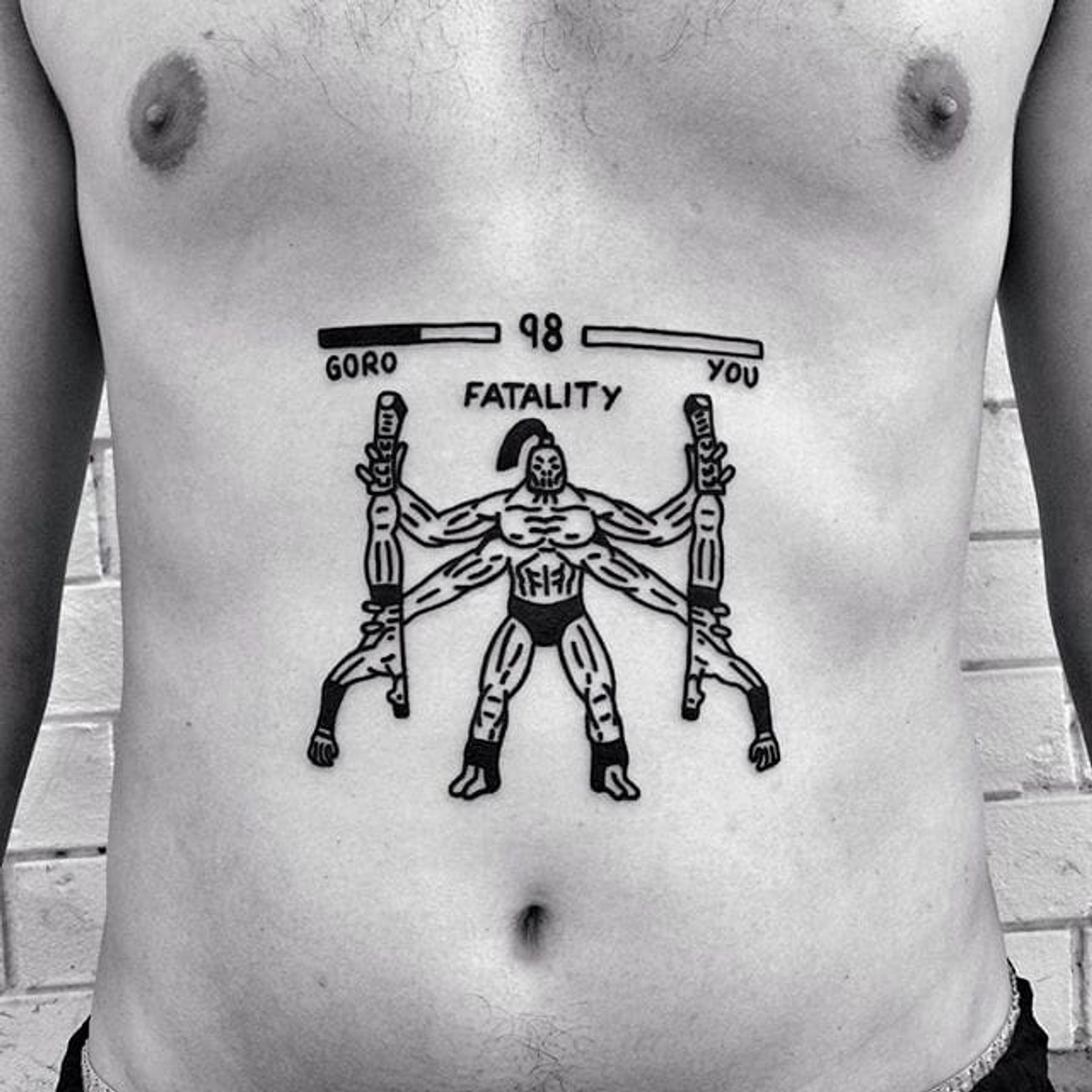 One of Eterno's badass bangers of Goro (IG—indomito8). #blackwork #Eterno #Goro #MortalKombat