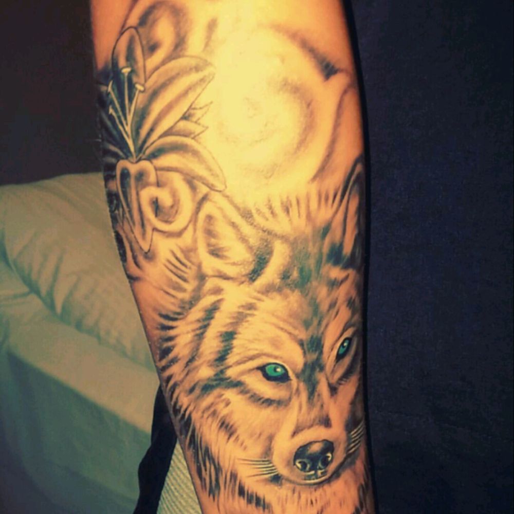 Wolf and lillys.๐Ÿบ๐ŸŒน My fourth tattoo!๐Ÿ’‹ #wolftattoo #lillys #fourthtattoo #turkey