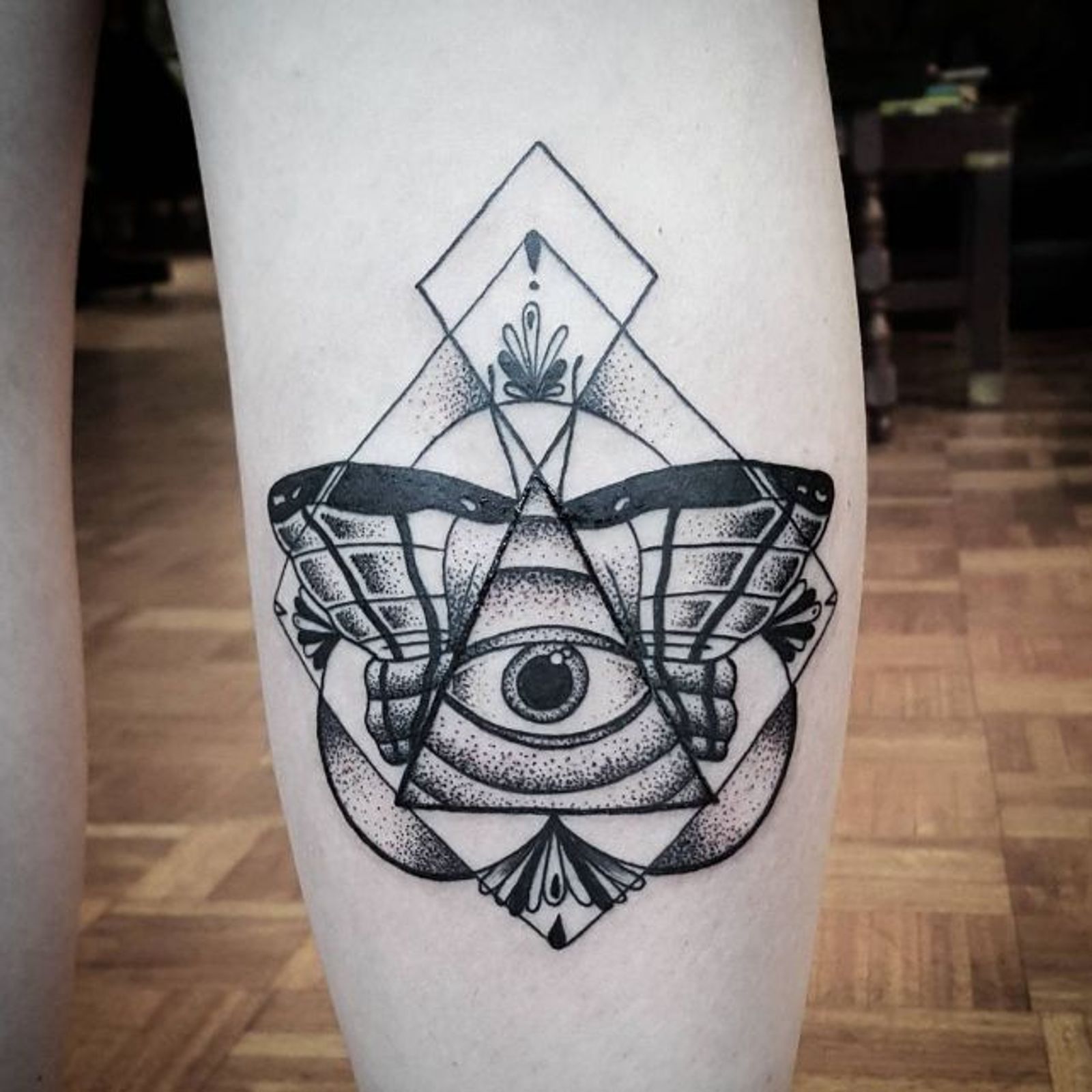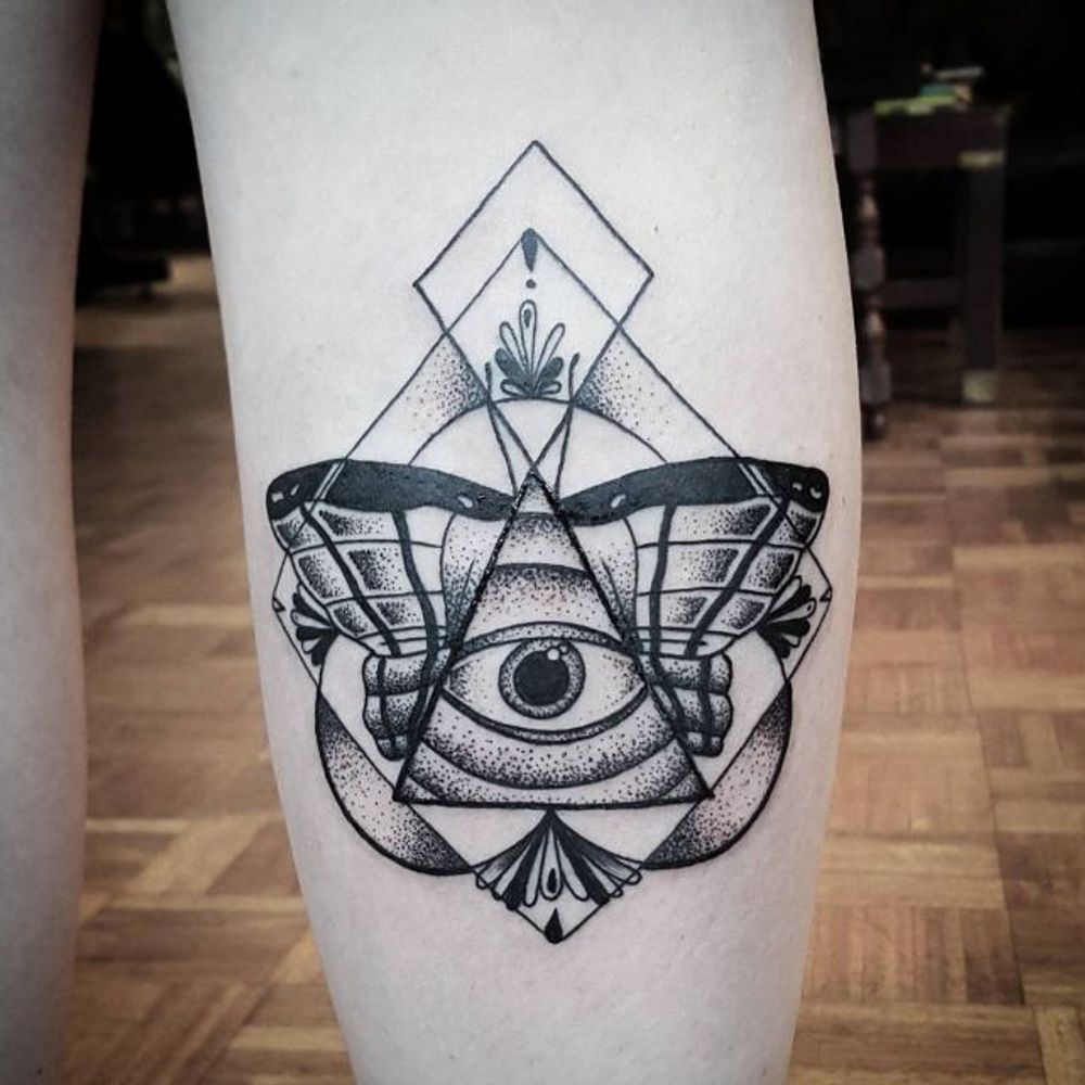 Geometric eye tattoo by Zoe Fraser #ZoeFraser #TheTattooedArms #geometric #blackandgrey #eye