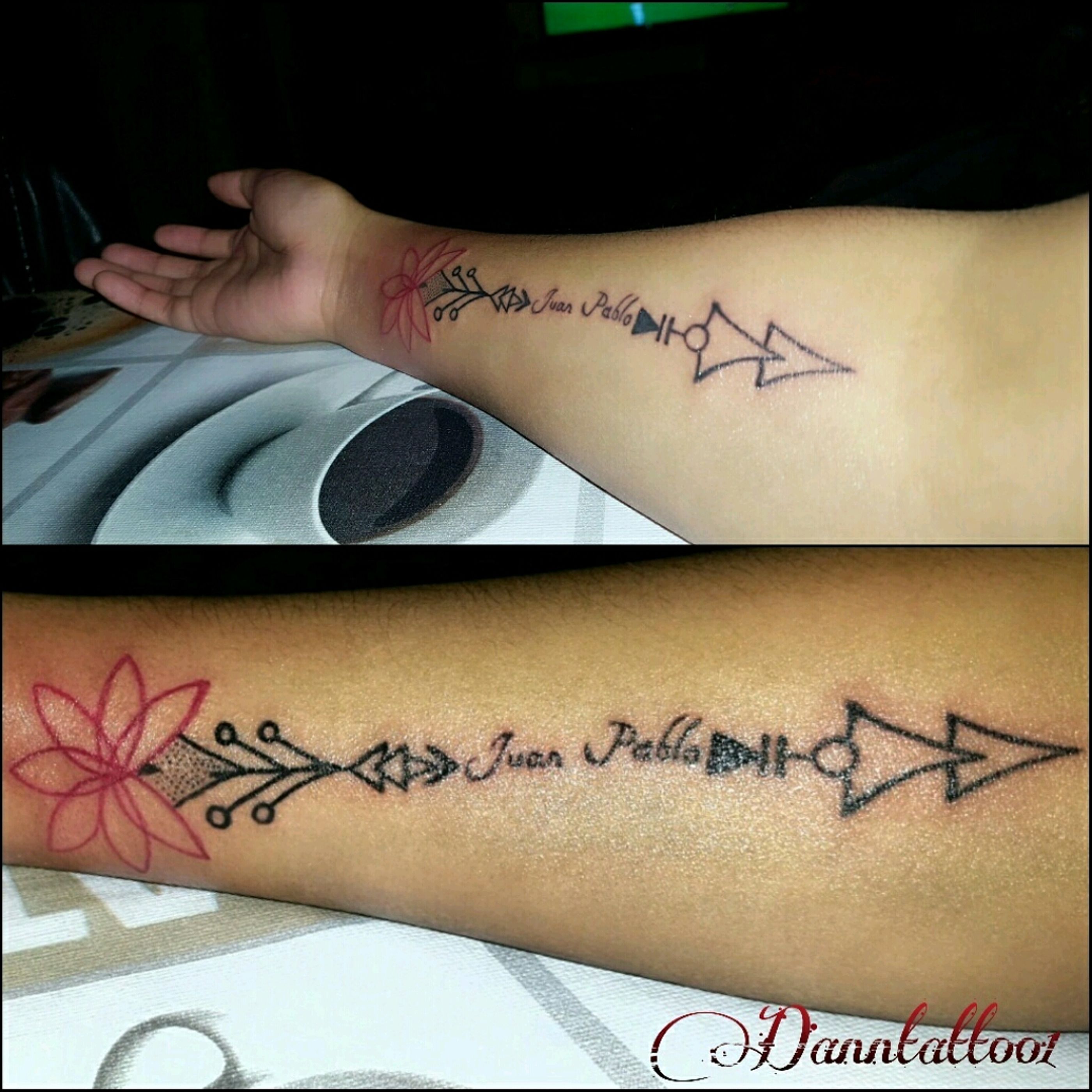 #tatuajedeflecha #flechatatuaje #arrowtattoo #tattooarrow #flor #flower #flowertattoo #ink #girltattooed #girlstattoo #familylove #amordefamilia
