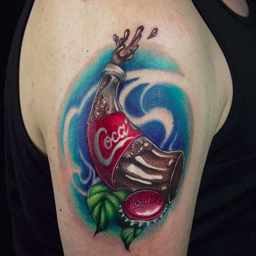 Warped Coke bottle by Dasha Kuznetsova (via IG -- shweet__shlobber) #DashaKuznetsova #cocacola #cocacolatattoo #coke #coketattoo