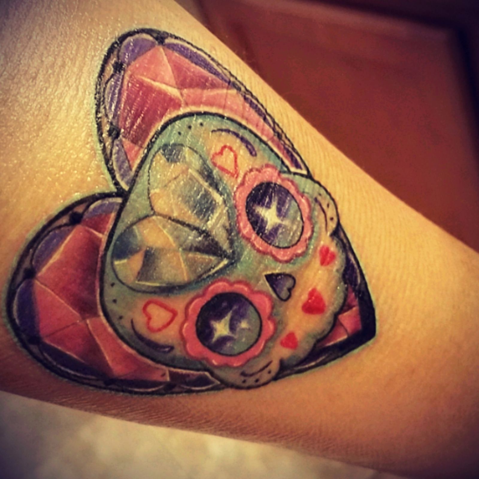 #sugarskull #kawaii #oddittytattoo by #jessebenson #gem #heart
