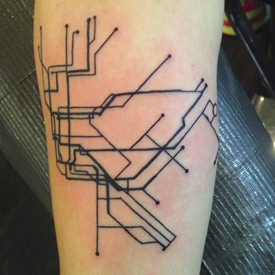 Brooklyn and Queens subway map by Olivia Marie (via IG -- tattoosbyolivia) #OliviaMarie #mtatattoo #subwaytattoo #nycsubwaytattoo #newyorkcitysubwaytattoo