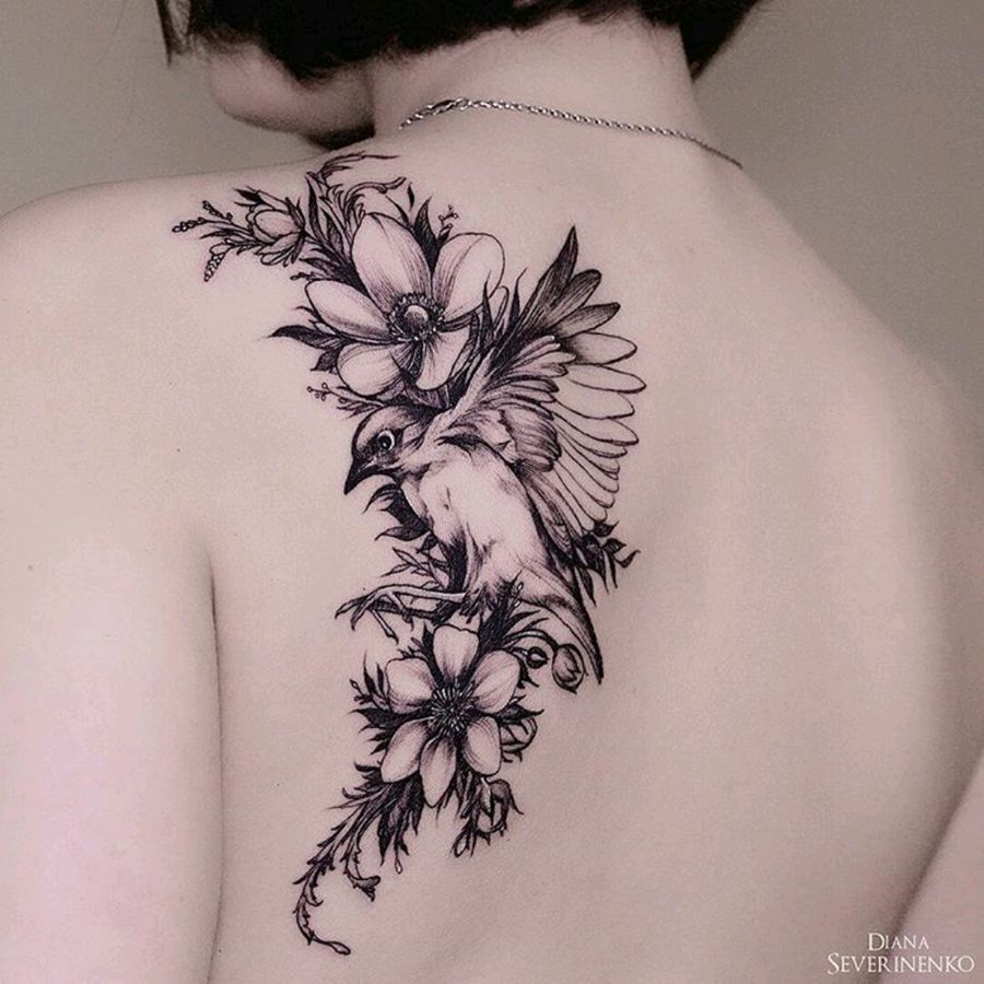 By #DianaSeverinenko #flower #bird #floral #blackwork