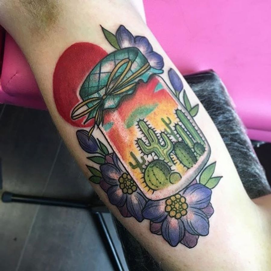 The desert inside a jar (via IG—bootattoo89) #masonjar #jartattoo #sceneinsideajar