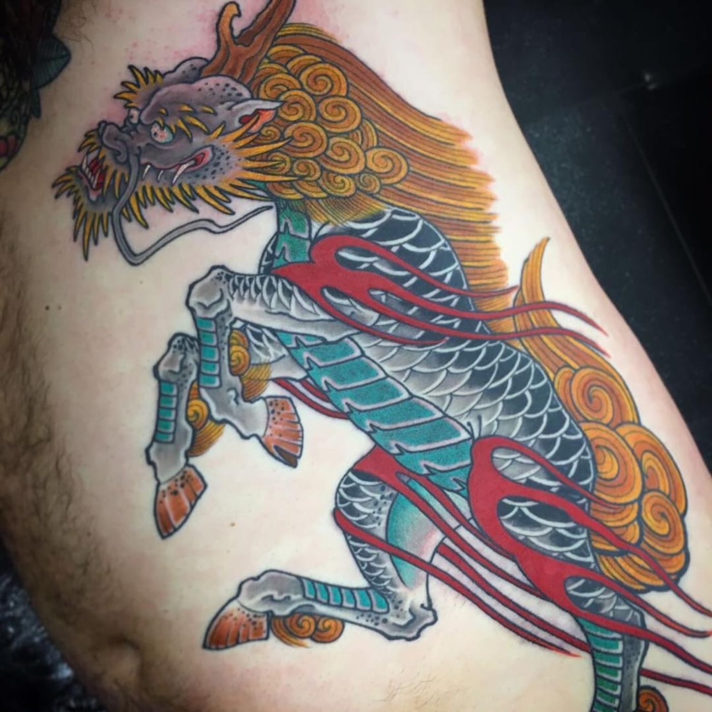 A galloping kirin by Steve H Morante (IG—steve_h_morante). #kirin #Iresuzmi #Japanese #SteveMorante #traditional