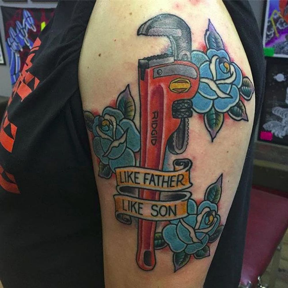 Plumbing runs in this family. By Rosendo Gonzalez (via IG -- mrluckystattoo) #Rosendogonzalez #plumbing #plumbingtattoo #plumber #plumbertattoo