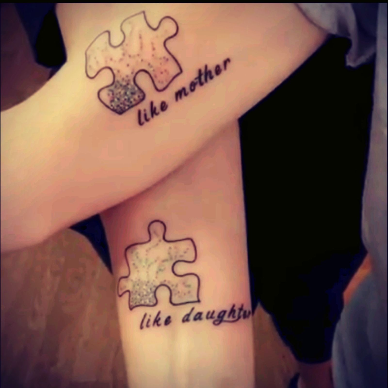 Matching mother-daughter puzzle piece tattoos. #puzzle #puzzlepiece #motherdaughter #motherdaughtertattoo #love