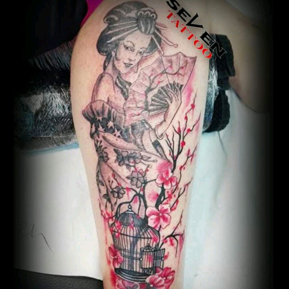#seventattooleiria #leiria #tatuagem #tattoo #gueixatattoo #watercolortattoos #florcerejeira