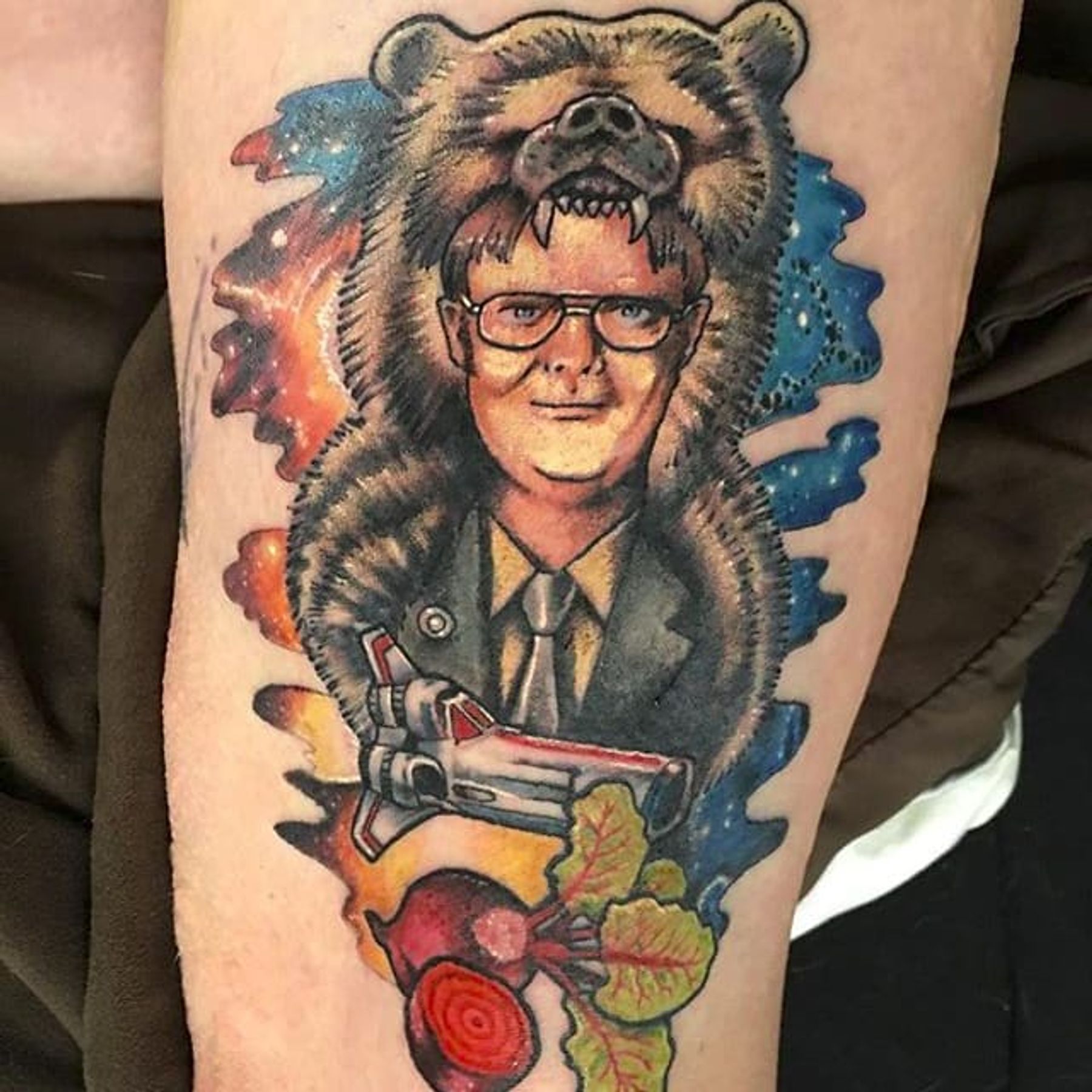 Dwight, bears, beets, Battlestar Galactica by Nicole Auletoo (via IG -- nicoleaulettoart) #nicoleauletto #theoffice #theofficetattoo