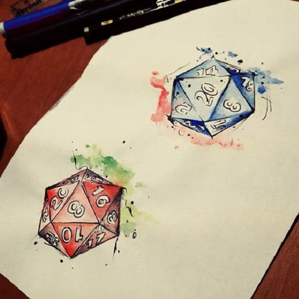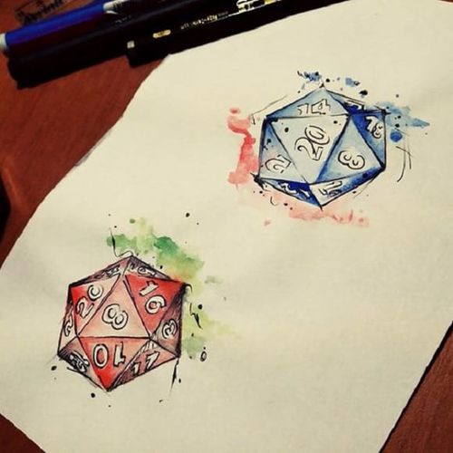 Aqueles dados de D20 maravilhosos! #MarianaSilva #MarianaLeãozinho #TatuadorasDoBrasil #nerd #geek #RPG #D&D #dados #dices
