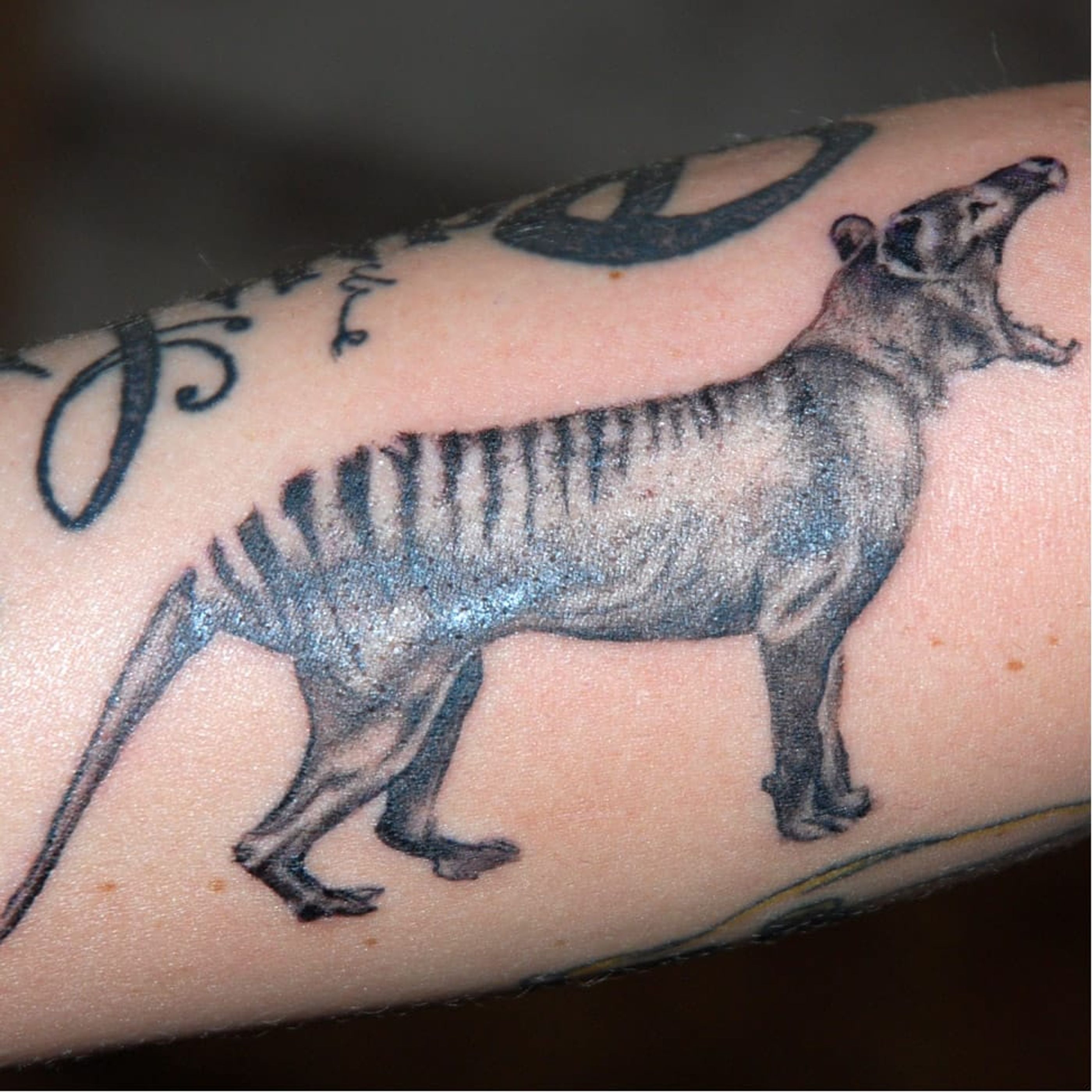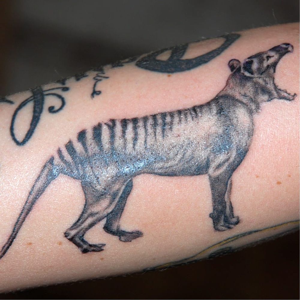 Lil Tasmanian tiger. He's probably saying "hello." #tasmaniantiger #tasmananiantigertattoo #thylacine #thylacinetattoo