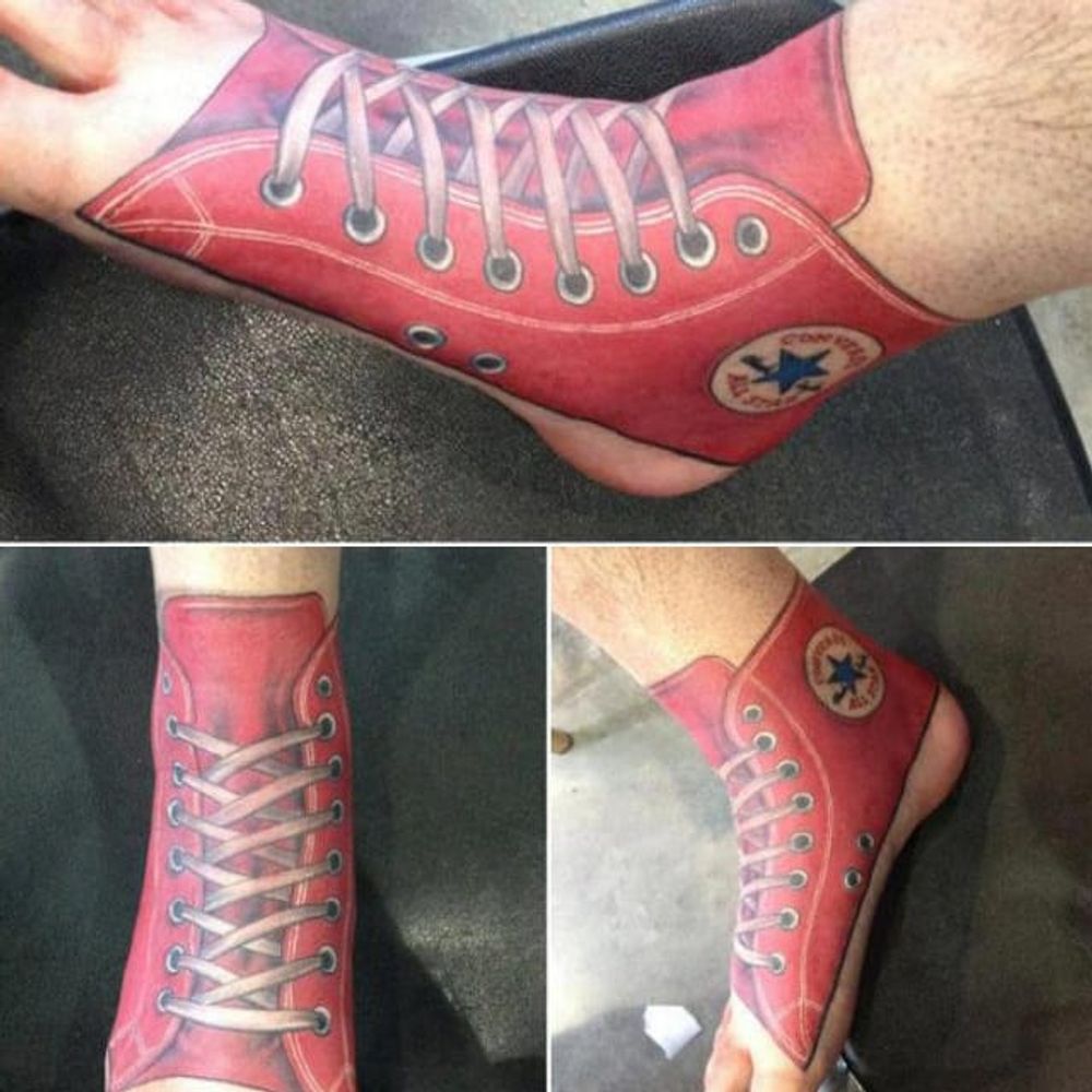 Amazing full foot Converse tattoo #converse #chucktaylor #chucktaylortatoo #conversetattoo #chucktaylorisaliar