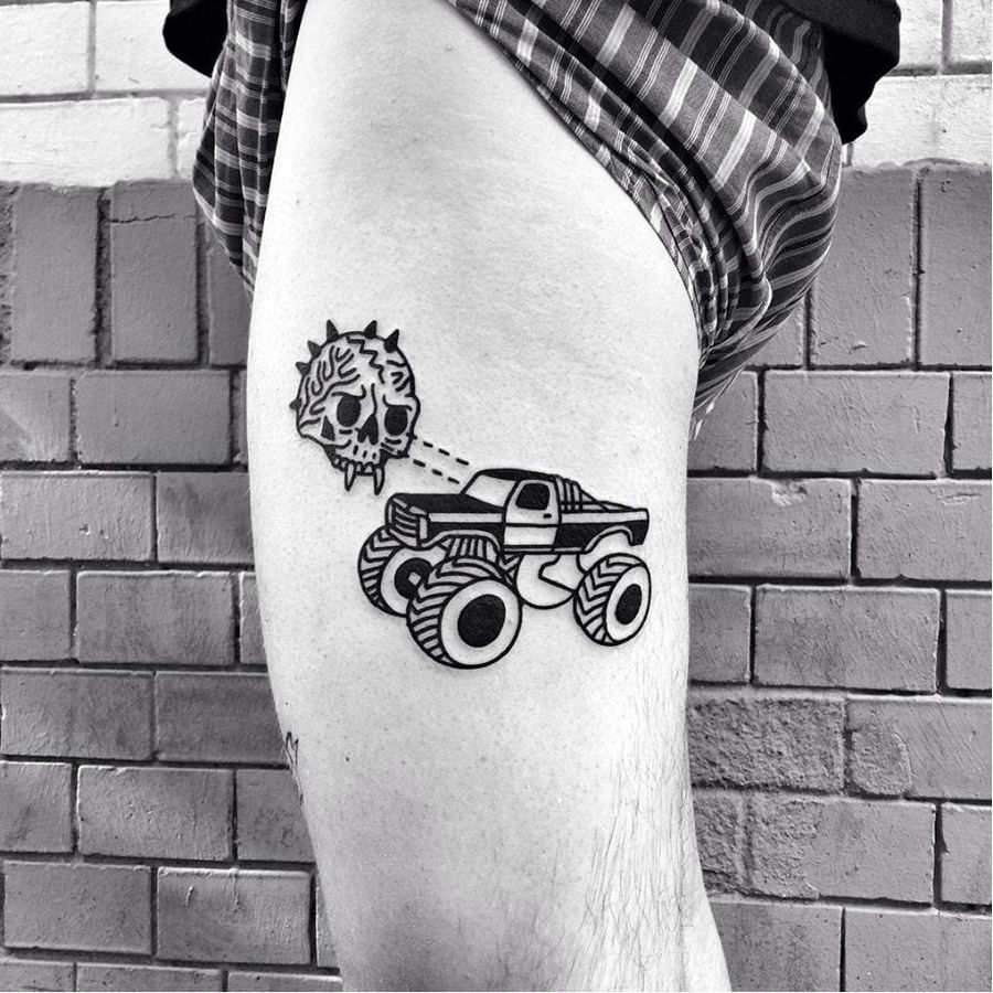 Monster truck blackwork tattoo by Eterno #Eterno #blackwork #monstertruck #skull