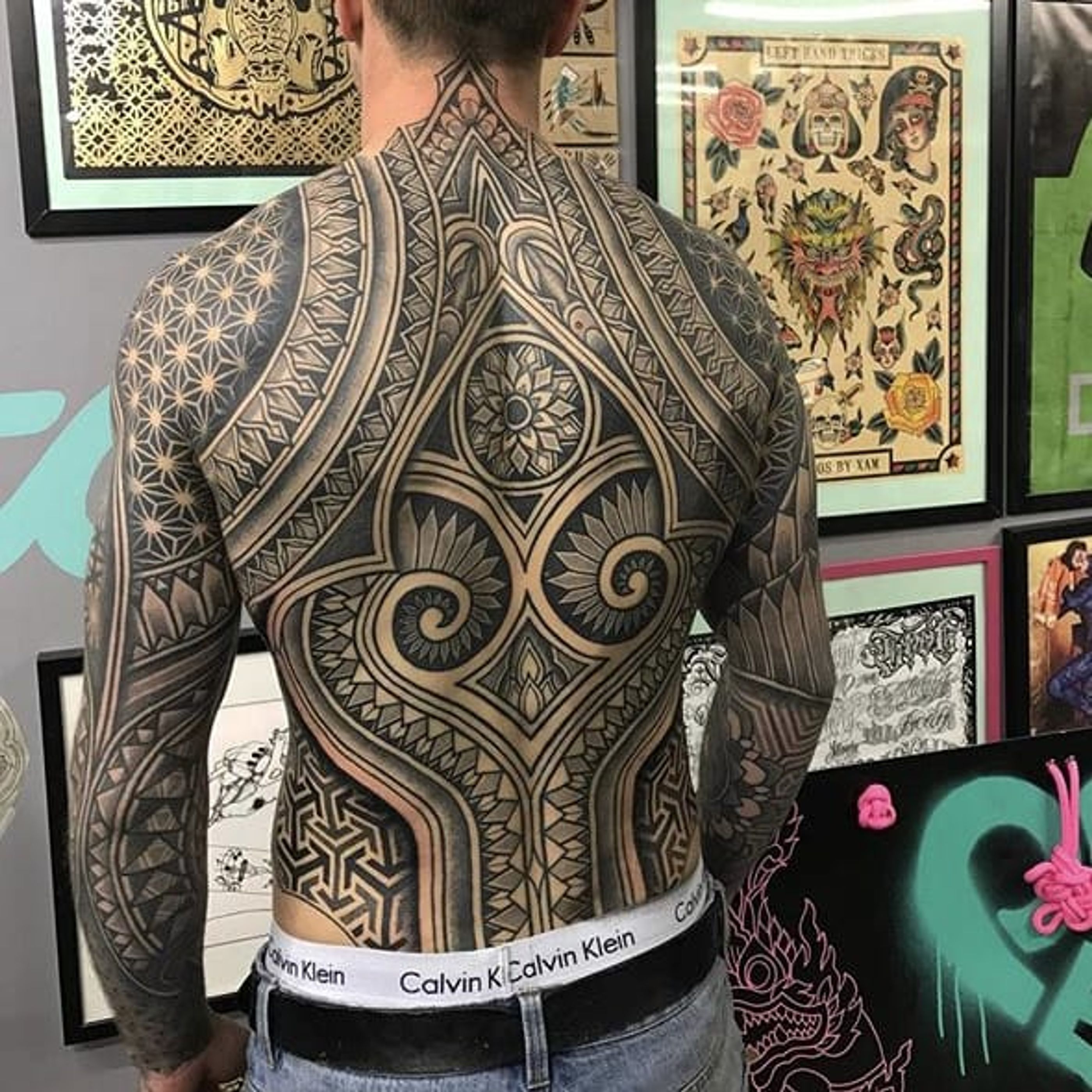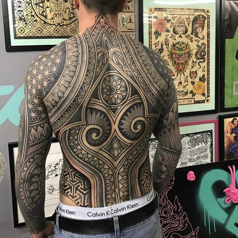 Back-piece by Kieran Williams #KieranWilliams #pattern #mandala #geometric #blackwork #tattoooftheday