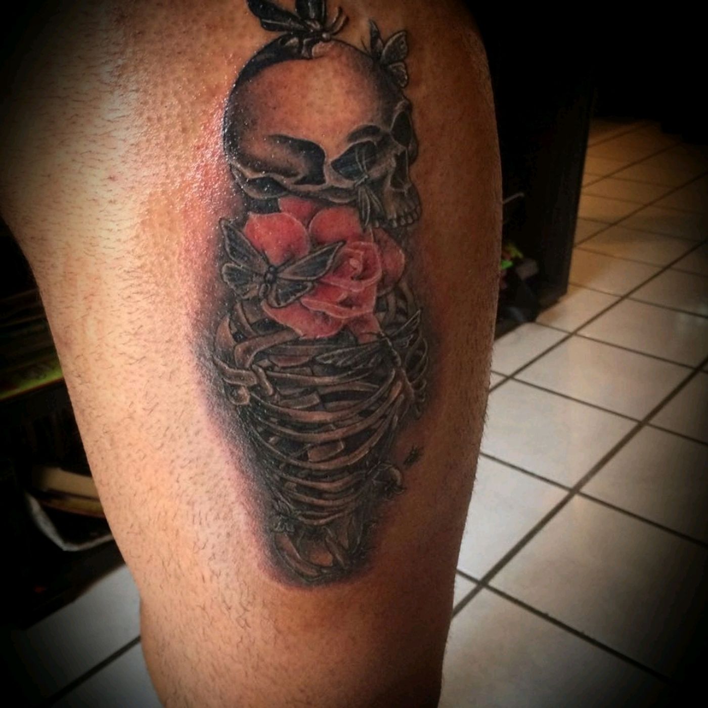#PanchoTattoos #blackwork #rosetattoo #skulltattoo #blackskulltattoo