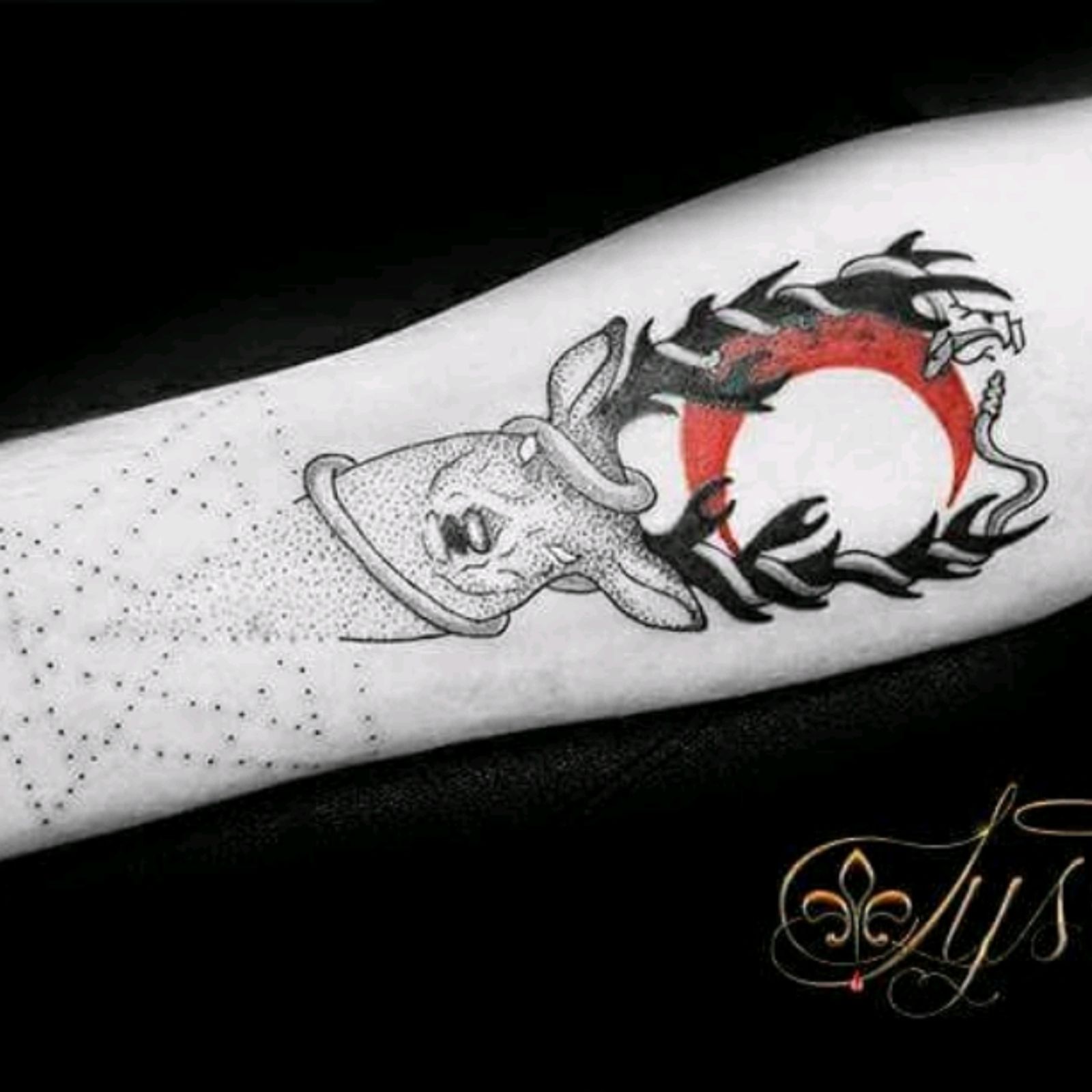 Tatouage avant bras homme cerf 🦌 serpent 🐍 lune rouge et géométrie par Lys Tattoo votre tatoueur à Gradignan proche de Bordeaux, Merignac, Pessac et Bassin d'Arcachon en Gironde nouvelle Aquitaine