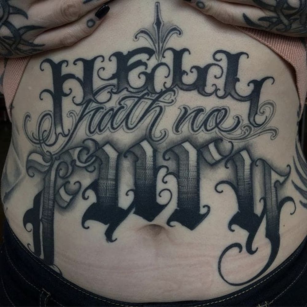'Hell hath no fury' by Big Meas #BigMeas #lettering #tattoooftheday