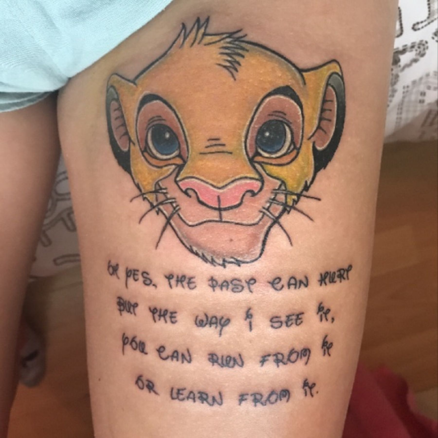 Lion King Tattoo. #lionking #lionkingtattoo #tattoo #legtattoo #disneytattoo #disney #simba #simbatattoo #colourtattoo Done By Tom at C16 in Hatfield,Hertfordshire, UK
