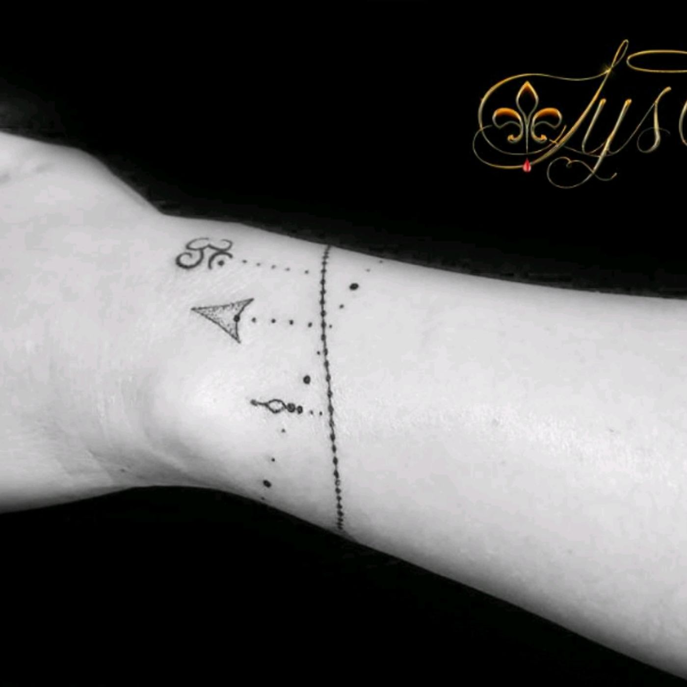 Tatouage autour du poignet femme comme un bracelet un bijou des perles qui s'enroule autour du bras avec des breloques pour le sublimer