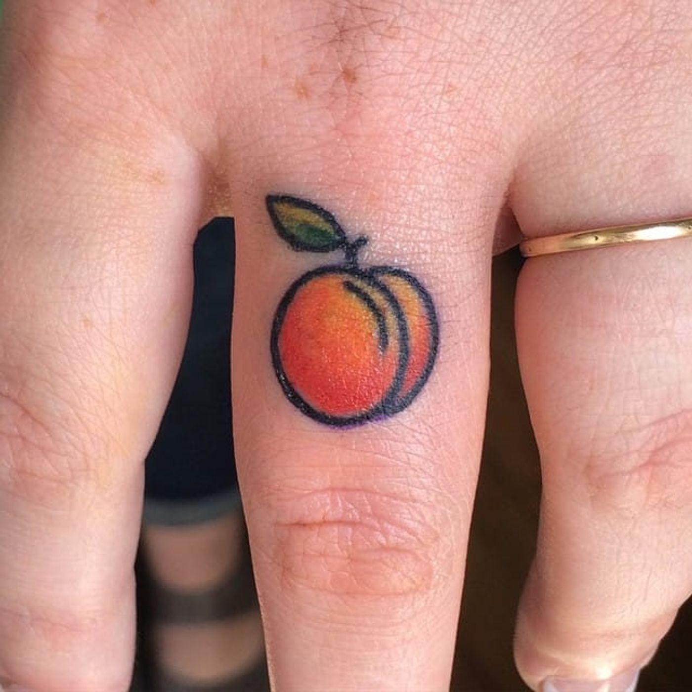 Peach tattoo by Erin Storm. #peach #fruit #microtattoo