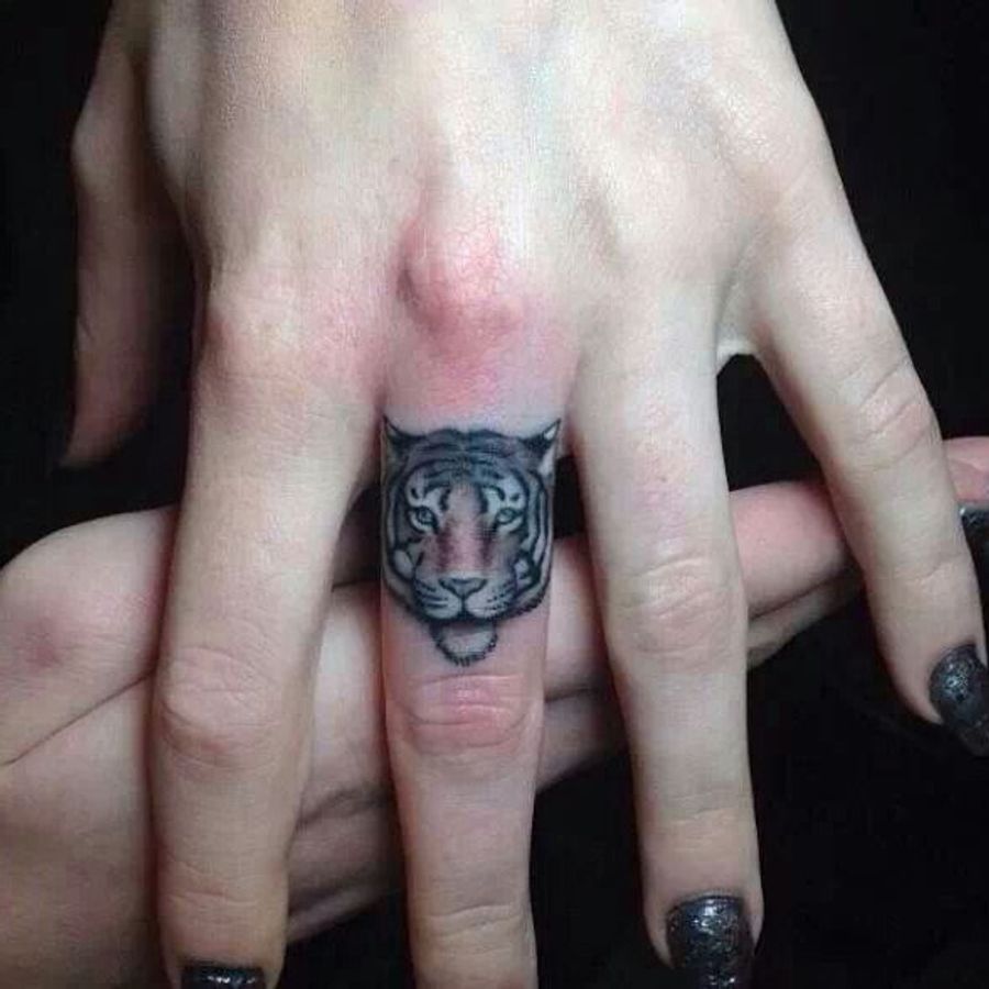 #fingertattoo #handtattoo #knuckletattoo #microtats #tiger