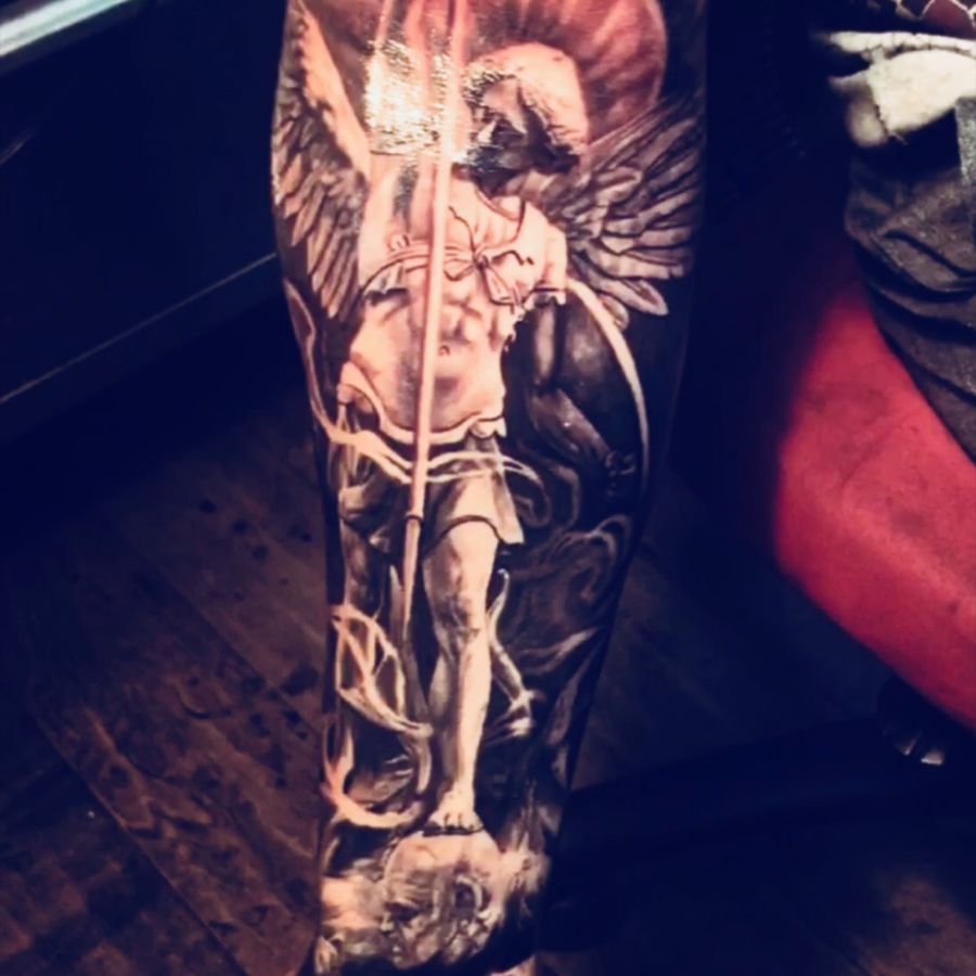 St. Michael. #blackandgreytattoo #stmichael #archangel