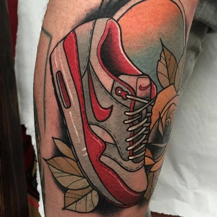 Nike Air Max tattoo by Kike Esteras. #airmax #nike #nikeairmax #sneakers #shoes #hypebeast #trend #neotraditional #KikeEsteras