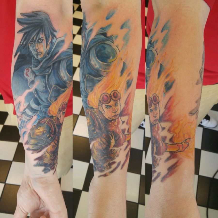 Magic The Gathering Tattoo of Jace Beleren and Chandra Nalaar.