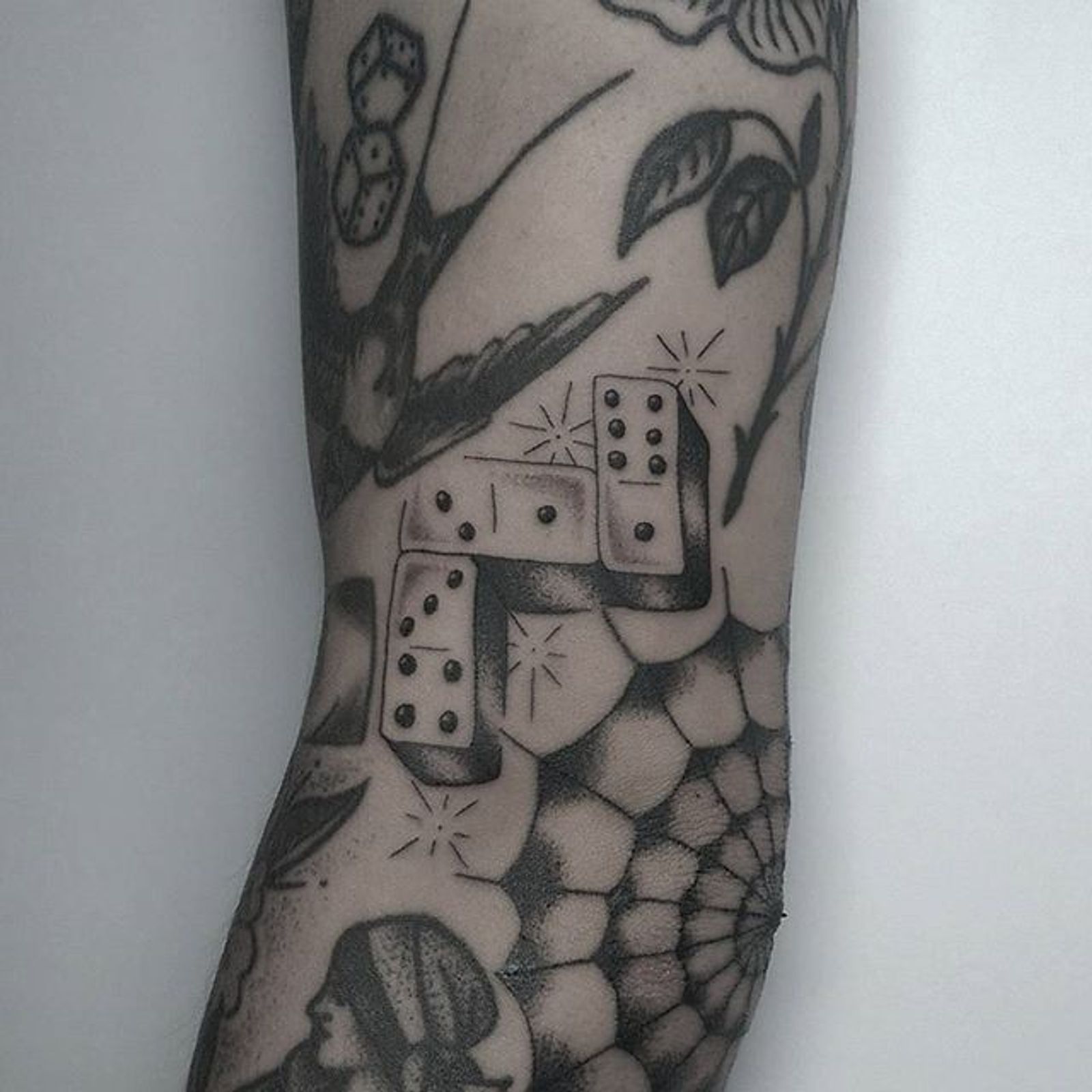 Domino Tattoo by Domino Daily #Fineline #BlackandGrey #FineLineTattoos #SingleNeedle #BlackandGreyTattoos #DominoDaily